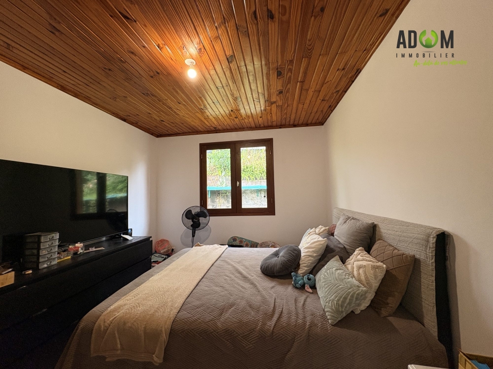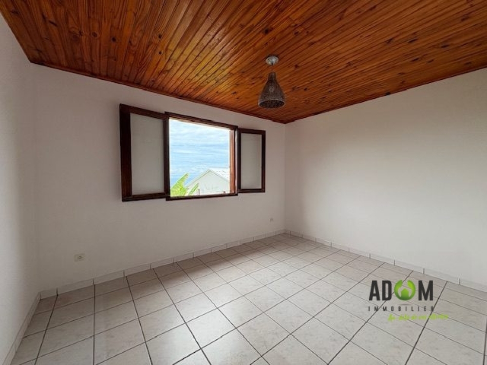 À l'étage principal, la maison s'articule autour d'un grand séjour cathédrale très lumineux, ouvert sur une cuisine aménagée et entièrement équipée; le tout donnant sur une jolie varangue de 31 m2 avec vue mer. Ce niveau comprend également deux chambres, une salle d'eau avec baignoire d'angle, douche et vasque ainsi qu'un toilette indépendant.