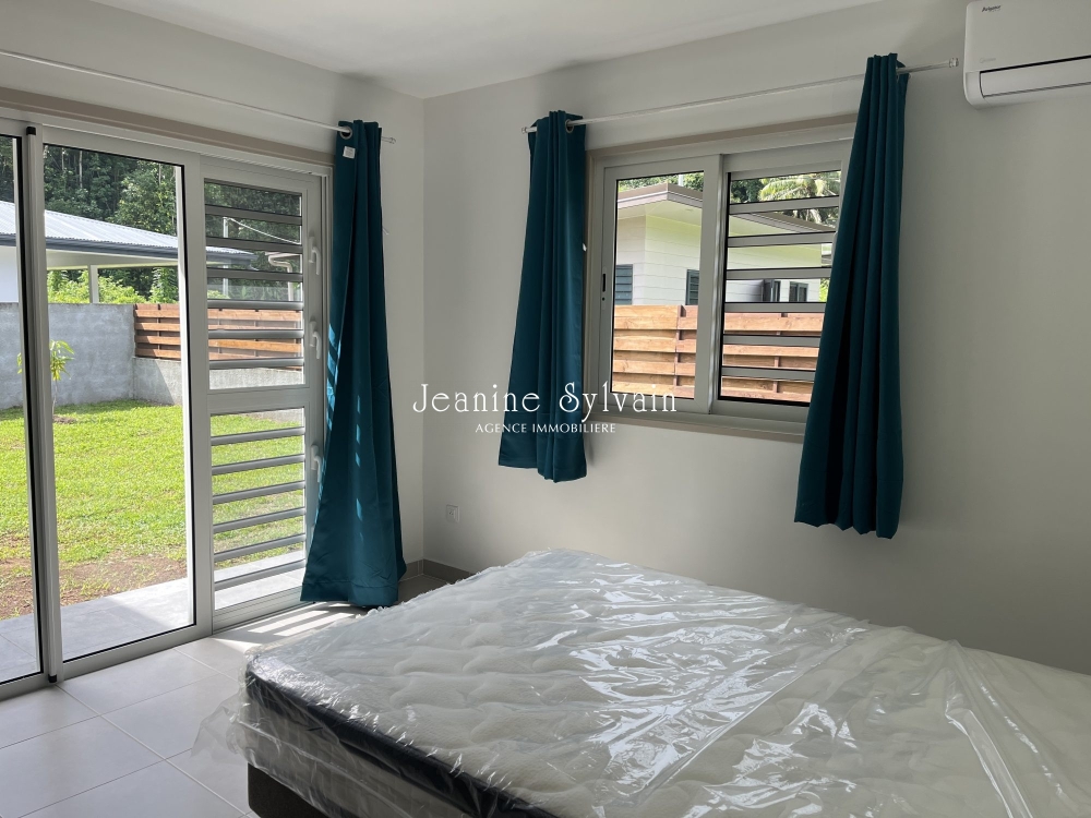 En plaine, dans un environnement calme et verdoyant, une maison F3 neuve de 80m2 habitable comprenant : 2 chambres, 2 salles d'eau avec WC, un salon, une cuisine aménagée et équipée. Une terrasse couverte de 20m2, un garage couvert et un coin buanderie.