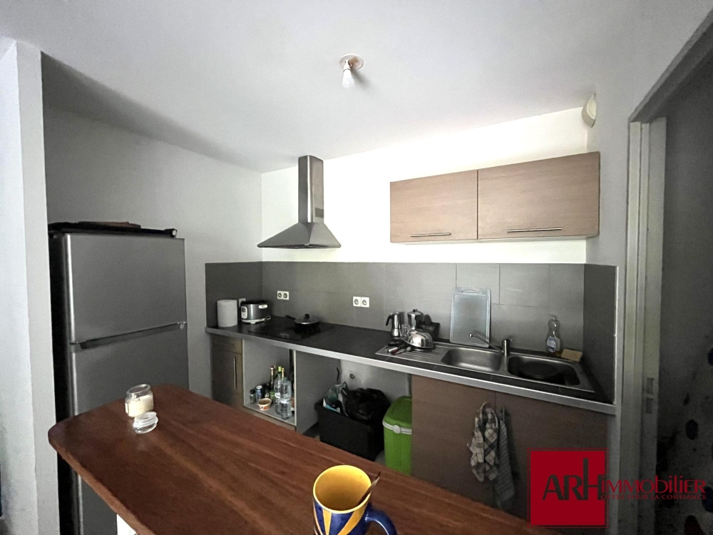 Description : une entrée, un séjour, une salle de bains, un wc, une cuisine américaine équipée, rangement, une chambre climatisée avec placard, un chauffe eau solaire, et un parking aérien couvert.
