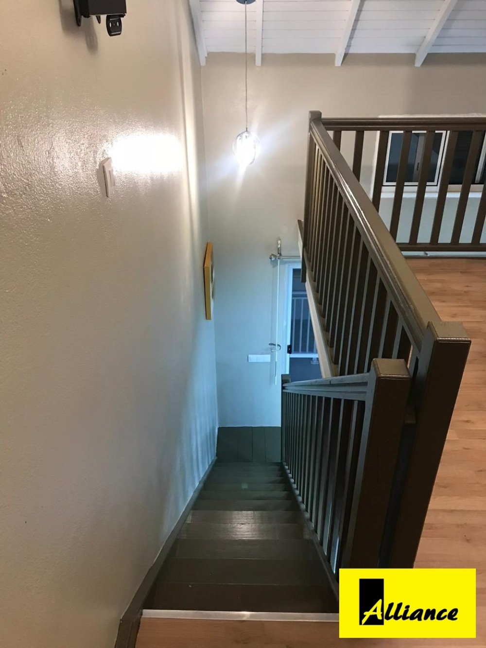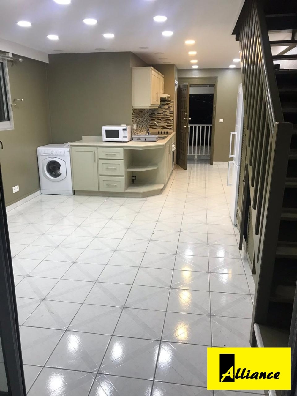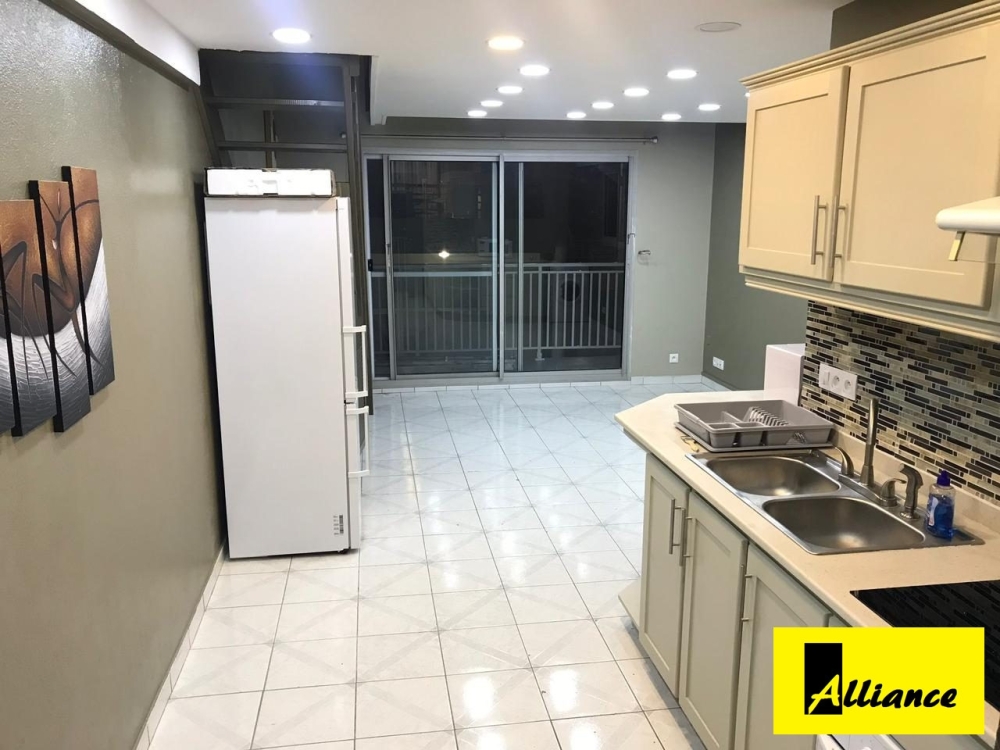 Une entrée, 1 salon, 1 cuisine, 1 sanitaire et un balcon. A l'étage, 1 grande chambre avec lit king size. Parties communes sous vidéo surveillance. Proche commerces et administrations. Loyer1180€ hors eau et EDF
