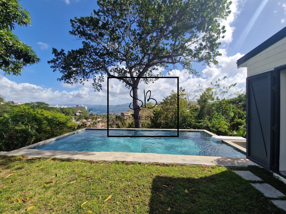 FORT DE FRANCE : Triangle d'Or, à 4 min de la Clinique St Paul ; Villa F5 sur deux niveaux entièrement rénovée en 2024. Sur les hauteurs de la ville de Fort de France, vous profitez de la vue mer sur la Baie de Fort de France et poserez vos valises pour profiter de la piscine 8x4 construite en dur. Sur 2 niveaux : terrasse, séjour, cuisine aménagée équipée, salon tv, une chambre avec salle d'eau et wc indépendant et à l'étage : 3 chambres climatisées dont une avec salle de bain wc et deux avec salles d'eau wc. Une des chambres de l'étage est accessible par la terrasse extérieure. Une buanderie et un débarras complètent cette villa. Deux places de parking dans l'enceinte de la villa reliée au tout à l'égout. A visiter sans tarder. STEPHANIE BRUYELLE IMMOBILIER au 06 96 27 57 93