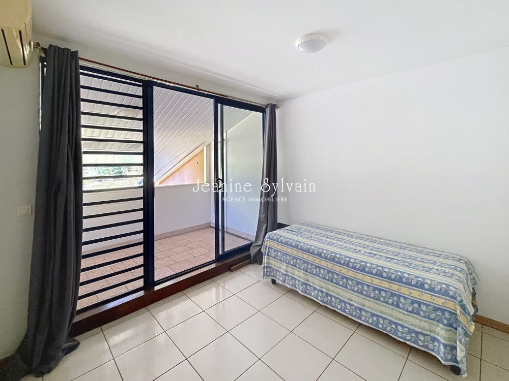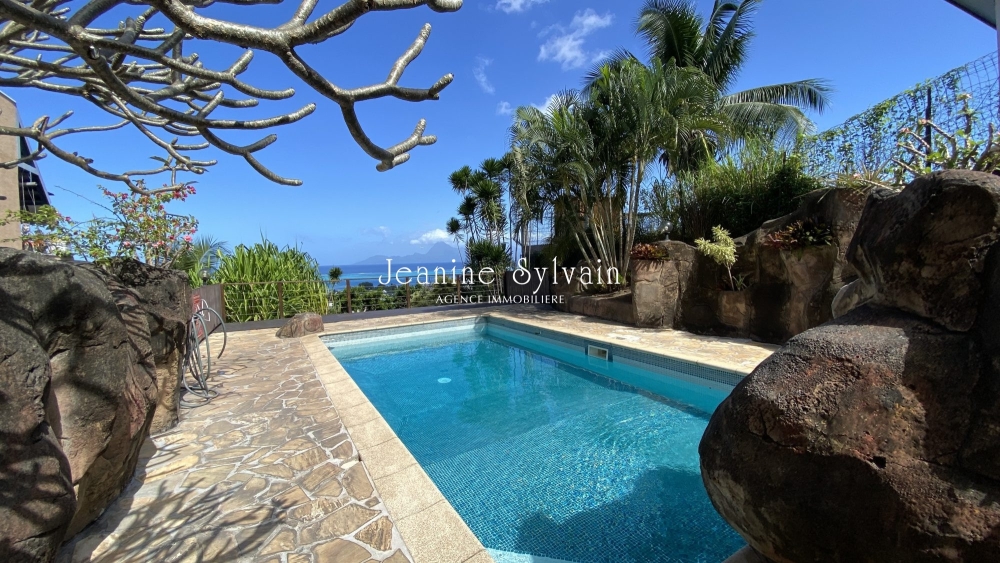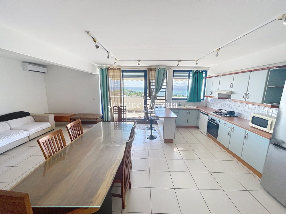 Situé dans une résidence sur les hauteurs de Faaa, avec une vue imprenable sur Moorea, appartement en dernier étage de plain pied, comprenant 3 chambres climatisées, 2 salles d'eau, séjour cuisine aménagée avec ilot central, deux terrasses couvertes, et un roof top au dessus permettant de profiter d'une vue à 180 °. L'ensemble meublé et équipé. Une place de parking et un cellier. Une piscine à disposition des résidents.
