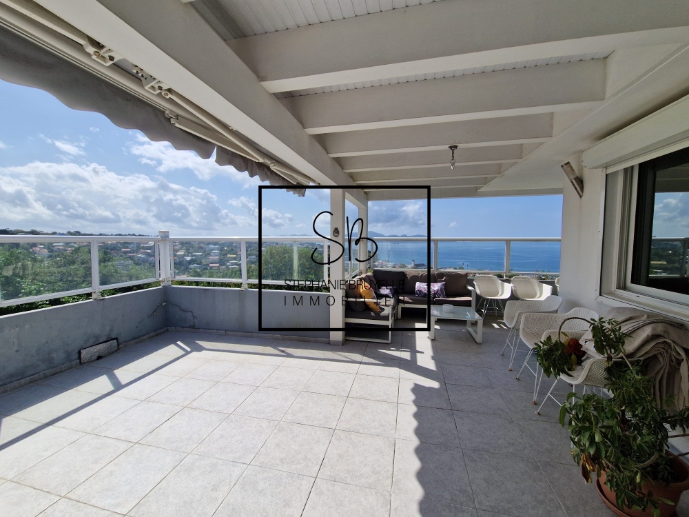 SCHOELCHER : Vue panoramique Mer imprenable du séjour double et des deux terrasses pour ce spacieux penthouse de 162m² habitable et 213m² avec terrasse. Vous adorerez la circulation de l'appartement. Double séjour, cuisine aménagée équipée, trois chambres climatisée avec placard ou dressing et chacune leur salle d'eau/de bain et wc. Il n'y a pas deux appartements comme celui ci à Schoelcher. Bien classé en catégorie D pour le DPE. Location en meublé à partir de Février 2026. Contactez STEPHANIE BRUYELLE IMMOBILIER au 06 96 27 57 93