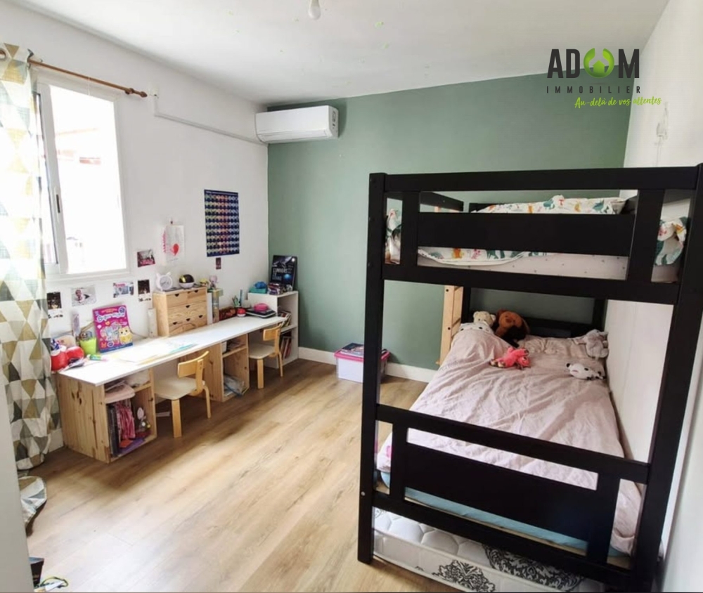 A l'étage, vous disposerez d'un espace bureau, de deux chambres avec dressing dont une climatisée, une salle de bain avec baignoire et un toilette.