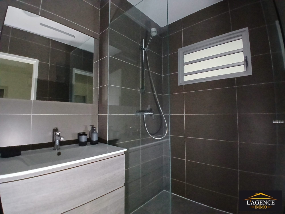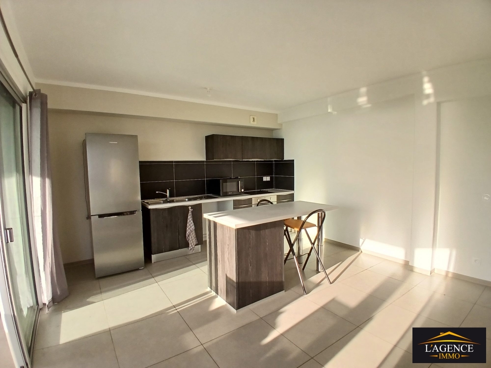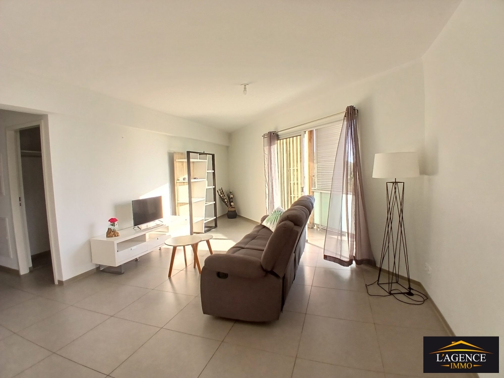 Au premier étage d'une résidence calme et sécurisée, appartement de type F3 d'une superficie d'environ 68m² entièrement meublé composée, d'un séjour lumineux, d'une cuisine équipée et aménagée, d'une grande terrasse couverte avec son espace buanderie, deux chambres avec placards et salle d'eau et un WC indépendant.