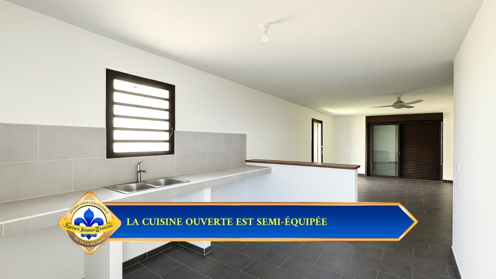CUISINE OUVERTE ET FONCTIONNELLE : La cuisine, ouverte sur le séjour, permet de cuisiner tout en restant connecté à la vie de la maison, avec de larges ouvertures pour la luminosité et la ventilation.