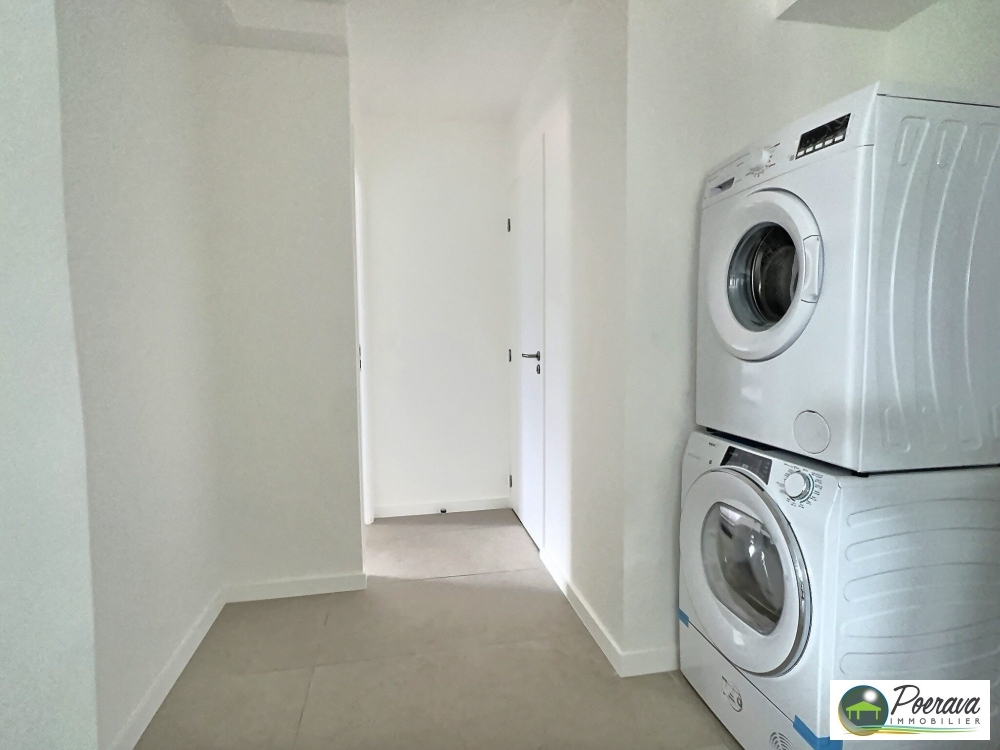 Il se compose d'une belle pièce de vie lumineuse avec cuisine ouverte entièrement équipée et meublée (lave-vaisselle inclus), d'un grand espace buanderie avec machine à laver et sèche-linge, ainsi que d'un WC indépendant.