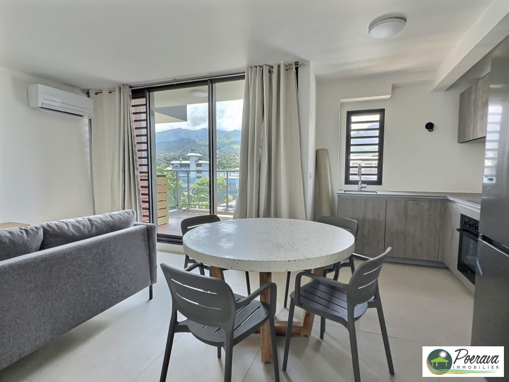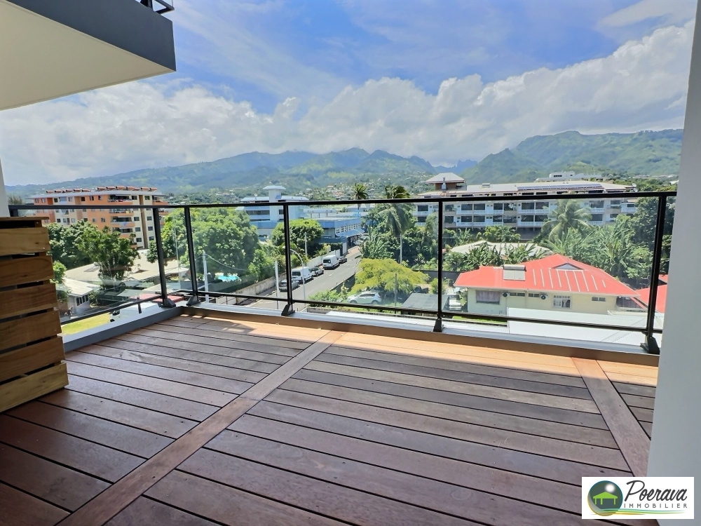 PAPEETE TAUNOA : Venez découvrir ce spacieux F2 de standing, offrant 52 m² intérieur plus une terrasse couverte de 12 m², avec une vue dégagée sur le Diadème.