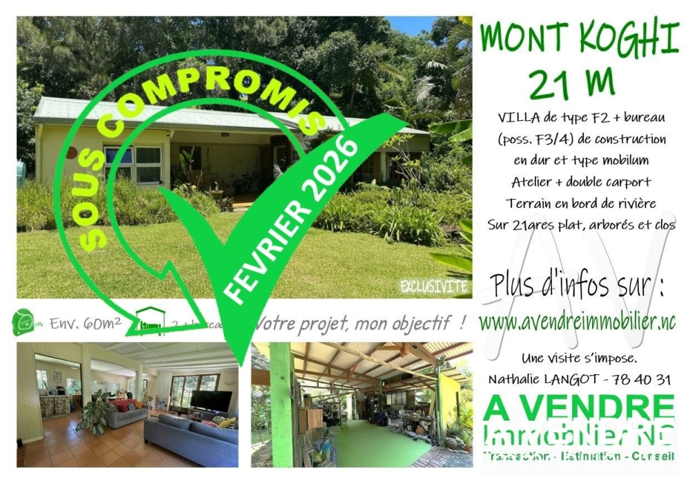 2026 02 - 21 M- VILLA F2 + BUREAU - SUR TERRAIN DE 21.06ARES - PLAT ET ARBORE BORDANT UNE RIVIERE