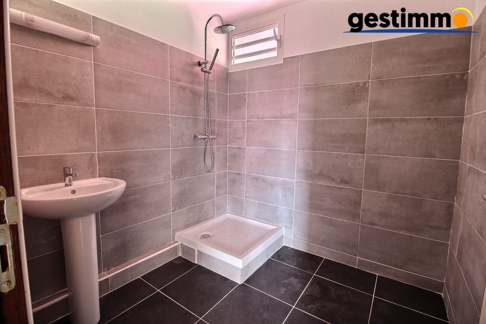 Au rez-de-chaussée, l'appartement se compose d'une entrée, d'un séjour lumineux, d'une cuisine aménagée, ainsi que de nombreux espaces pratiques incluant une buanderie et un cellier. Une chambre climatisée, une salle d'eau avec WC, et une terrasse donnant sur un jardin privatif viennent compléter ce niveau, parfait pour profiter de l'extérieur.