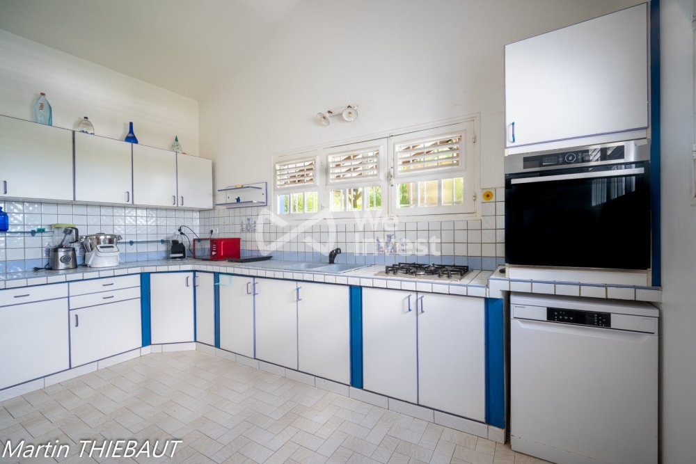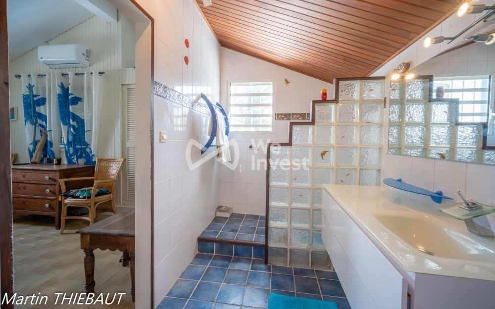 Située dans l'un des quartiers les plus recherchés de Ducos, cette maison au caractère unique séduit par son architecture originale et ses volumes généreux. Avec 260 m² habitables et une distribution ingénieuse, elle s'adresse à ceux qui recherchent un bien différent, spacieux et doté d'un réel potentiel. Dès l'entrée de 12 m², vous accédez à un vaste séjour de 48 m² et à une cuisine fonctionnelle de 15 m², complétés par un bureau de 24 m², idéal pour le télétravail ou une activité indépendante. L'espace nuit comprend trois chambres ainsi qu'une suite parentale, offrant confort et intimité à toute la famille. Une vaste véranda de 46 m² prolonge la maison et constitue un espace de vie supplémentaire particulièrement appréciable pour les repas ou la détente, avec un passe-plat pratique reliant la cuisine. Un véritable atout complète cette propriété : un T2 indépendant déjà exploité en Airbnb, disposant d'un fonctionnement bien rodé et d'une clientèle régulière. Cet espace, composé d'une cuisine-séjour, d'un bureau et d'une chambre, représente une source de revenus immédiate et un levier pour optimiser la rentabilité du bien. À l'extérieur, le jardin tropical soigneusement aménagé crée une atmosphère naturelle et reposante, mettant en valeur le charme du site. Quelques travaux de rafraîchissement permettront de révéler pleinement le potentiel exceptionnel de cette maison atypique. Une opportunité rare à Ducos, combinant emplacement stratégique, grande capacité, cachet architectural et rentabilité grâce au T2 indépendant. Un bien singulier à découvrir sans tarder.