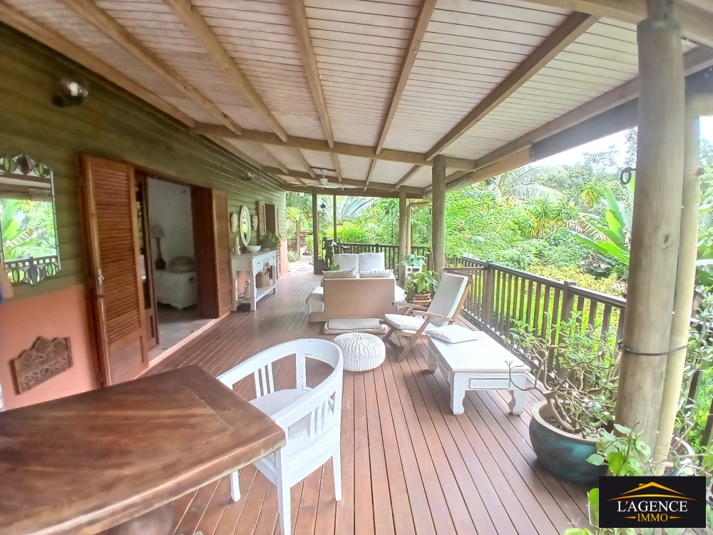 Édifiée sur trois niveaux, la villa principale se compose au rez-de-chaussée d'une cuisine équipée et aménagée ouverte sur un séjour lumineux, d'une chambre avec placards, d'une salle de bain avec WC ainsi qu'une grande terrasse couverte