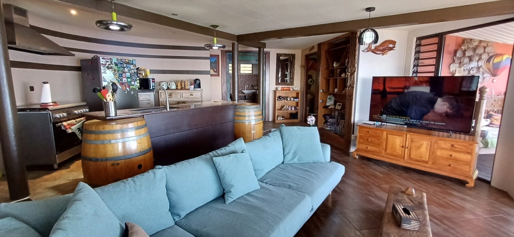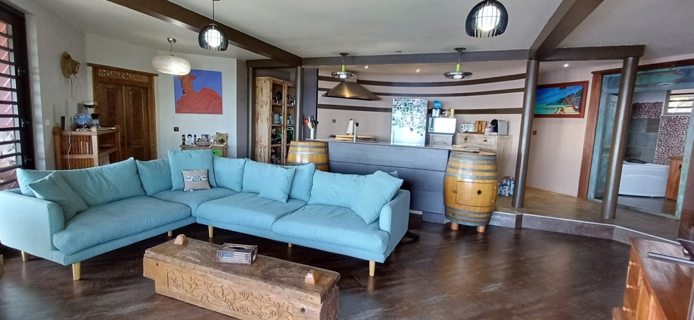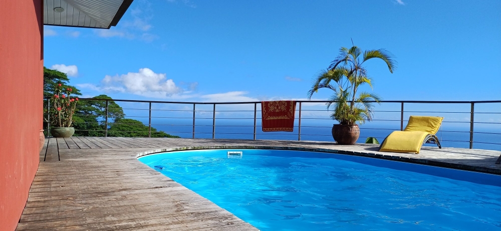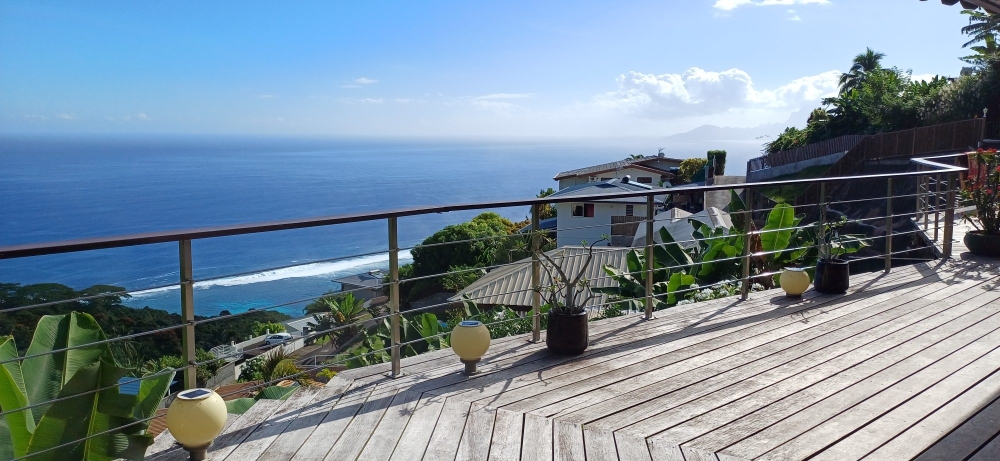 PUNAAUIA : Maison Atypique de 170m² avec Piscine et une Vue Panoramique sur l'Océan, le Lagon et la Crète de la Montagne, comprenant :