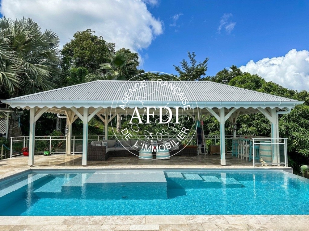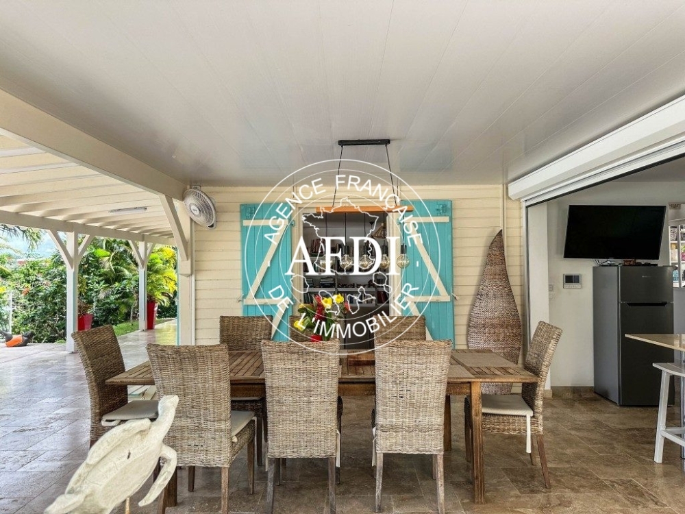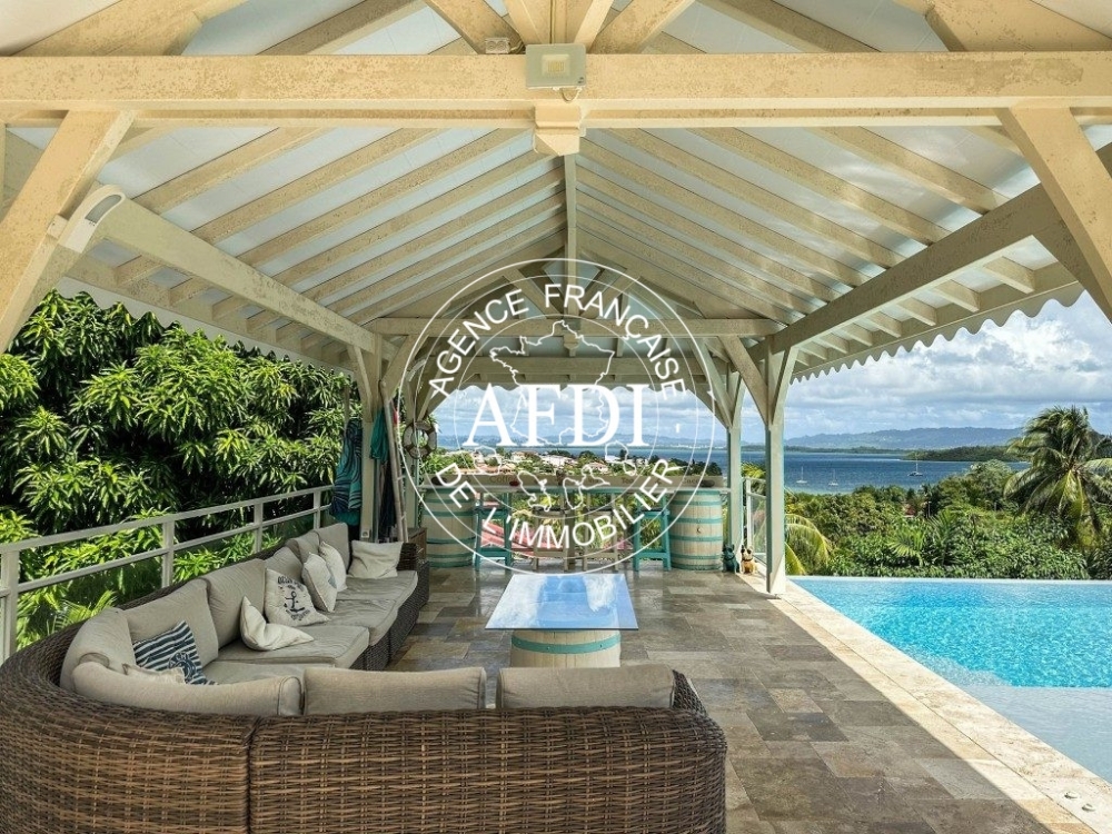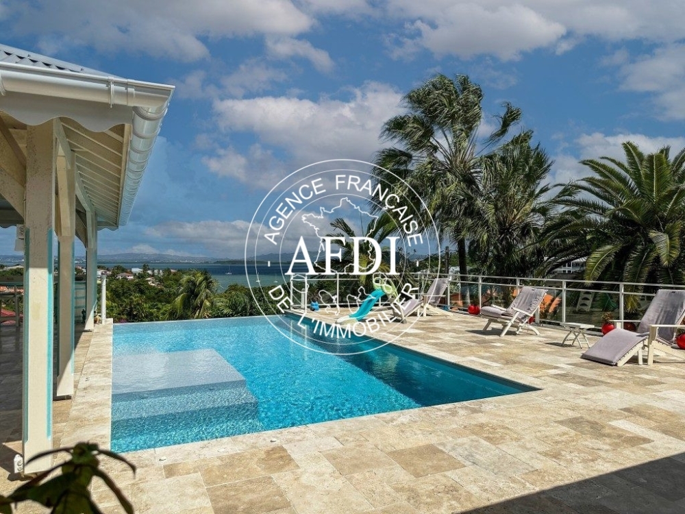 AFDI PRESTIGE vous présente aux Trois-Ilets, nichée dans un quartier résidentiel paisible, découvrez cette somptueuse villa offrant une vue panoramique sur la commune et sur la mer.
