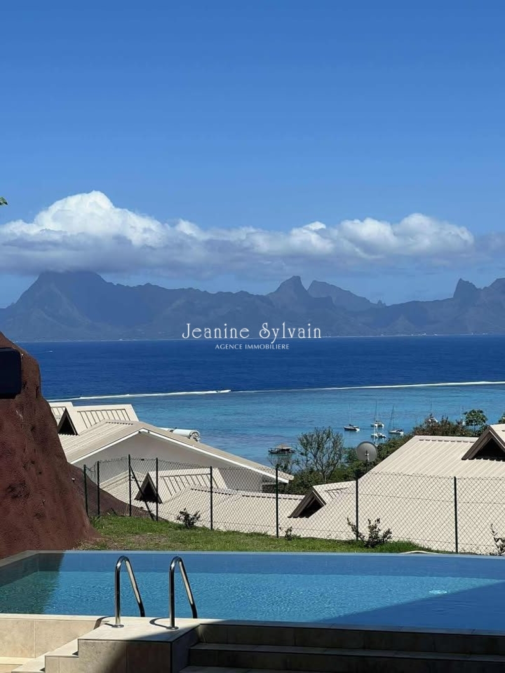 Cuisine moderne meublée et équipée ouverte sur le salon, terrasse de 18m2 avec superbe vue mer et Moorea, 2 chambres climatisées, 2 salles d'eau, wc indépendant, buanderie, 2 places de parking privatives.