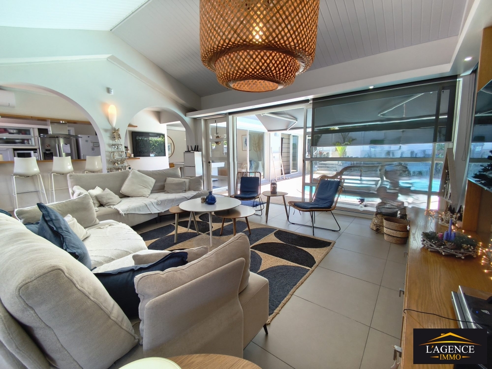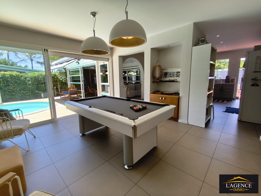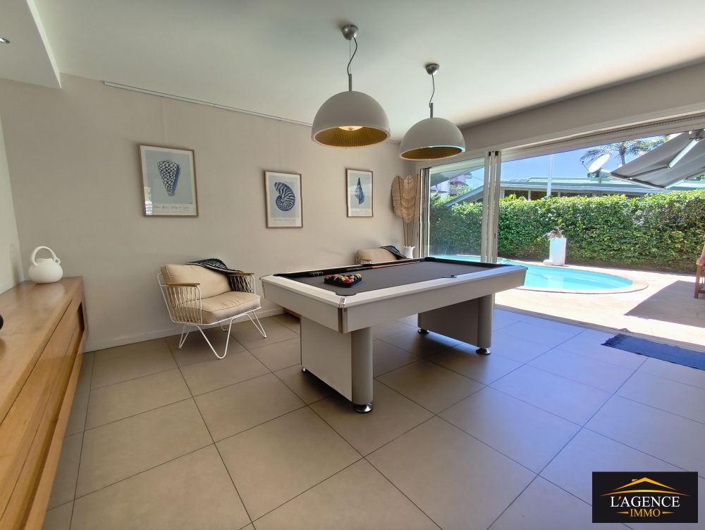 Dans un quartier recherché et privilégié, profitez de cette villa aux prestations de qualité, bénéficiant d'un bel espace de vie avec sa cuisine ouverte sur un grand salon équipé de baie vitrées et donnant accès à une terrasse couverte avec son espace salon et sa table à manger, et une salle de billard.
