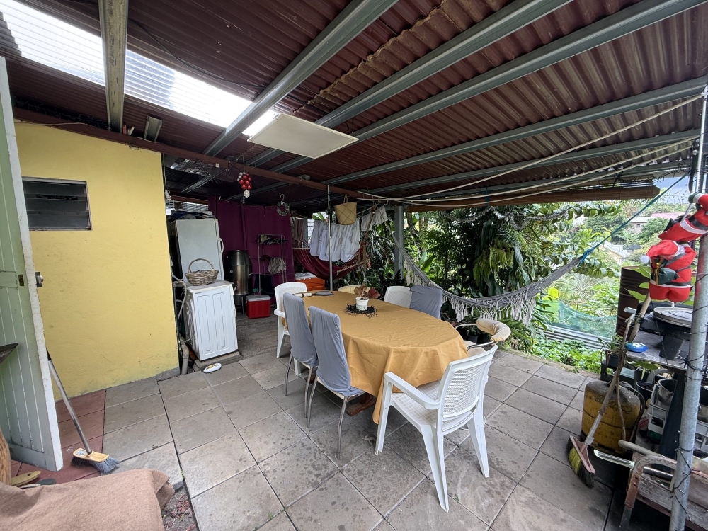 Extérieur : Une agréable terrasse couverte avec vue dégagée, surplombant un petit jardin paisible.