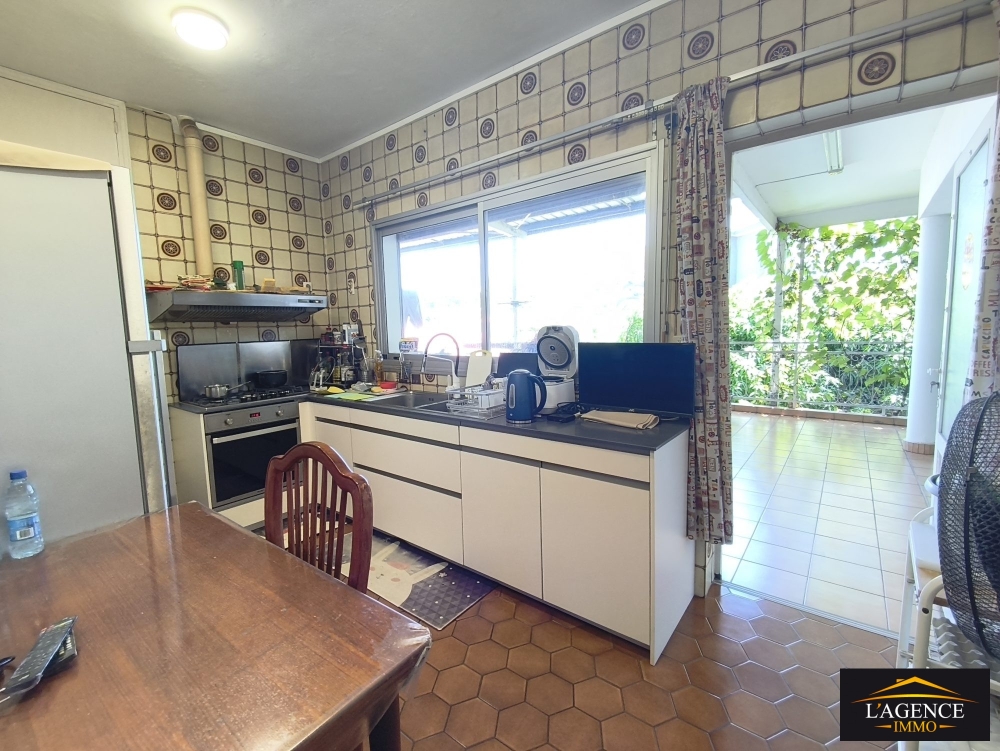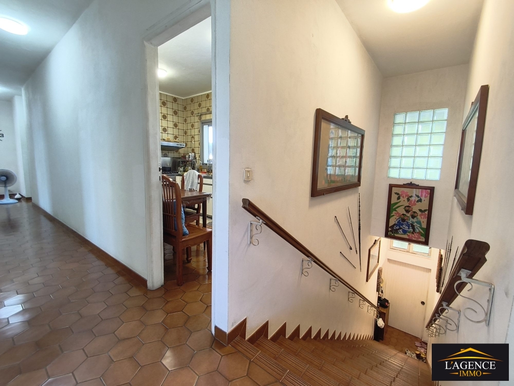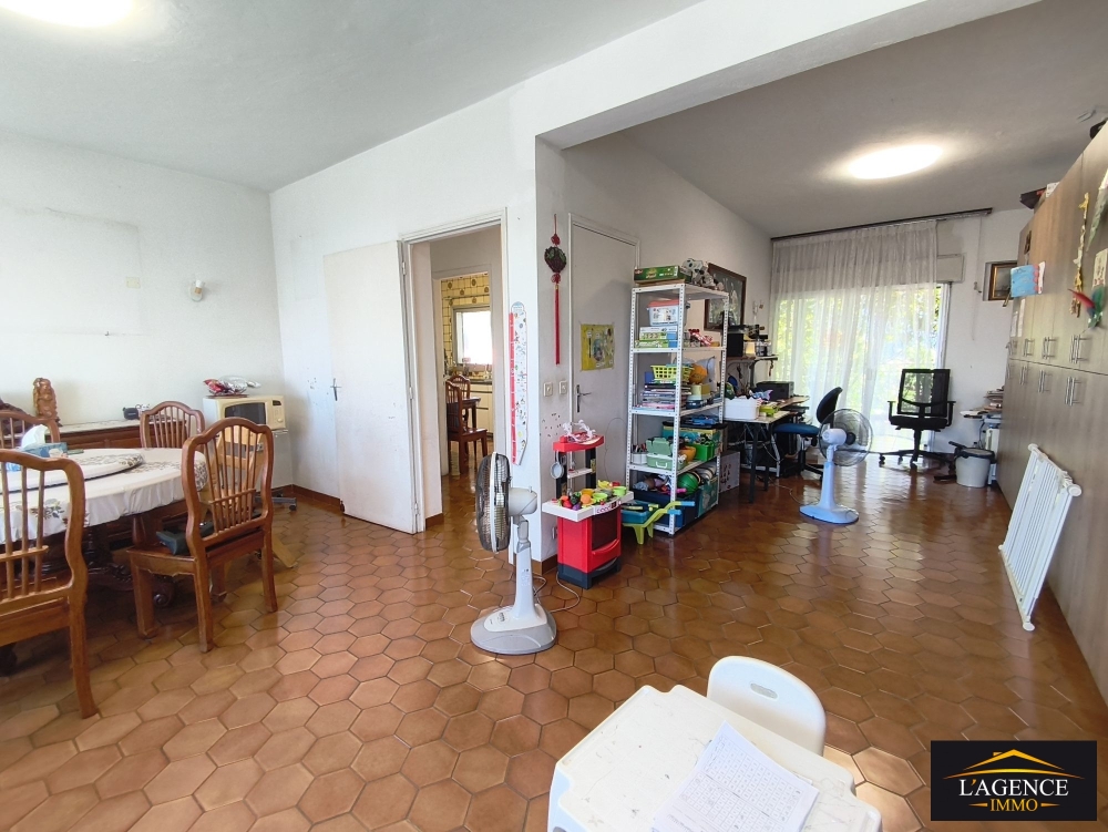 Un espace de vie composé d'un salon et salle à manger, une cuisine séparée avec accès terrasse arrière, 2 chambres avec placards et une 3ème avec petit dressing, une buanderie avec accès terrasse arrière, une salle d'eau avec accès terrasse arrière et un sanitaire indépendant.