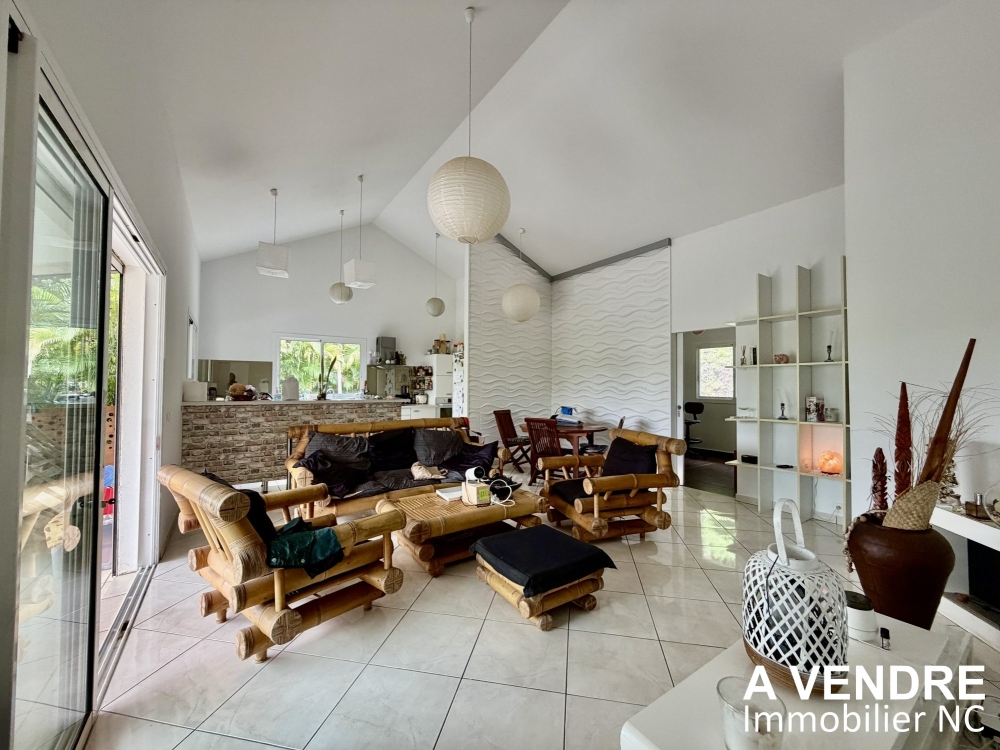 À vendre en exclusivité, cette villa F4 de 31,5 millions, située sur un terrain de 10 ares, offre un cadre de vie accueillante. Récemment construite et entièrement sécurisée, elle dispose d'une piscine sans vis-à-vis et d'un faré, le tout agrémenté d'un vaste deck. La terrasse couverte, prolongée par un grand deck surplombant l'espace piscine, offre une vue imprenable sur les montagnes environnantes.