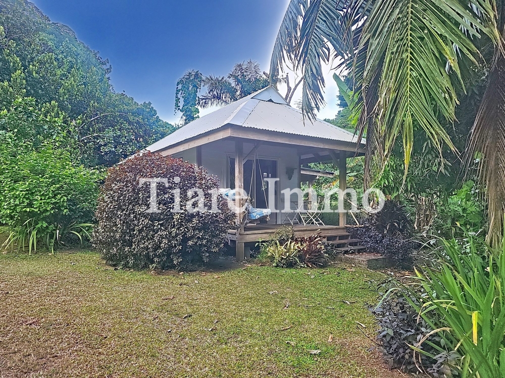 Bungalow indépendant de 20 m² avec terrasses, exploité en saisonnier (9 000 XPF/nuit).