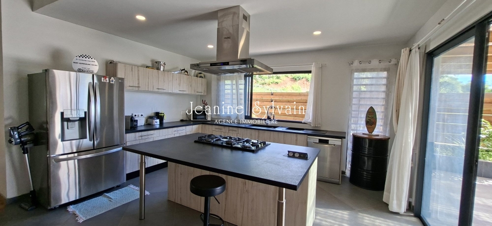 Punaauia PK12, dans un petit lotissement calme et apprécié, grande maison récente entièrement meublée et climatisée avec une entrée, wc indépendant, buanderie, belle cuisine moderne équipée et meublée avec îlot central pour plus de convivialité, un grand salon/salle à manger, 3 chambres climatisées avec dressing et avec chacune sa salle d'eau privative, une mezzanine permettant de stocker vos effets personnels avec un coin bureau.