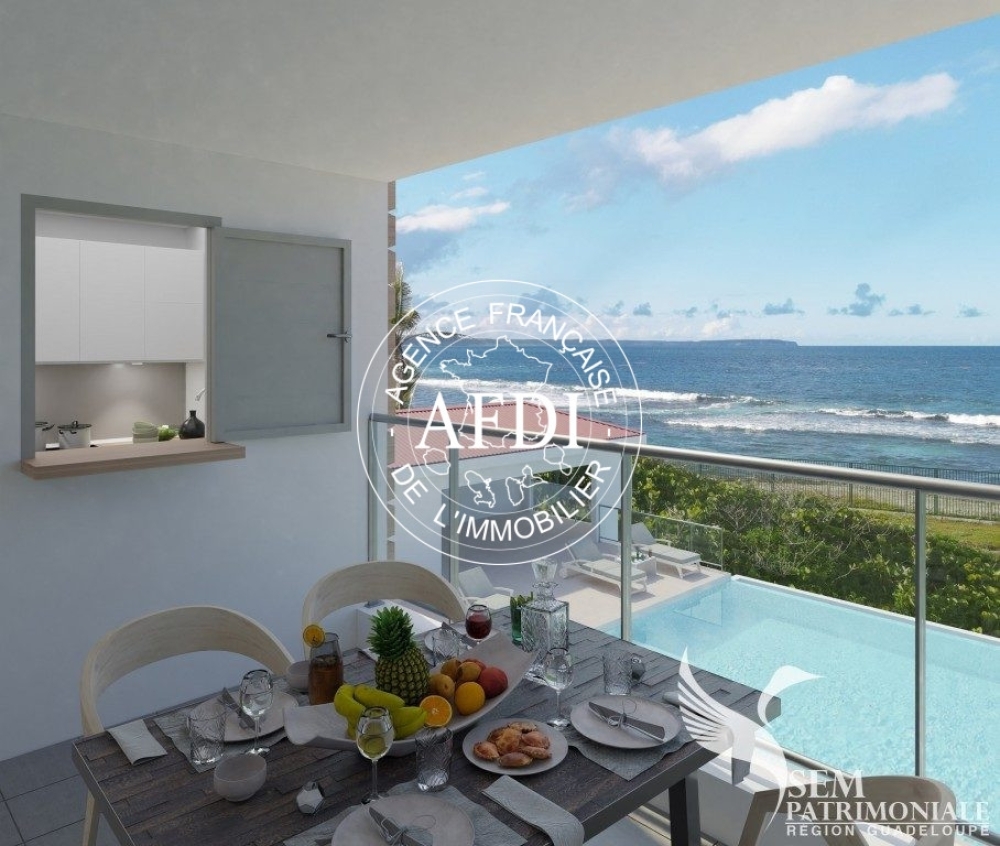 Sur la presqu'île de la baie du Moule, la Résidence Corail vous propose un cadre de vie agréable avec vue sur la mer, une piscine et des services de proximité tels que des magasins, une plage et des commodités essentielles pour votre quotidien.