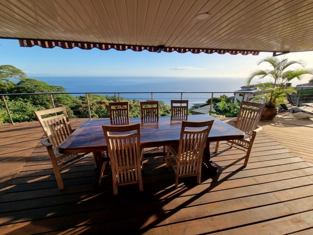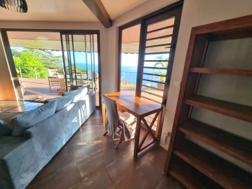 PRODUIT RARE - PUNAAUIA -TE MARUATA: Bella villa exotique d'architecte (rénovée en 2014) T4/T5 ( 160 m2) pleine vue océan , deck / terrasse de 200 m2 en bois massif, pas de vis à vis, aménagements , rénovations récentes et importantes, cuisine ouverte avec ilôt central , pleine vue sur living terrasse et mer, belles finitions, piscine avec liner béton neuf, fare poté traditionnel , P. électrique , poss de faré habitable ( 25 m2) sur l'arrière . Cave spacieuse à finaliser, ( cave à vin / home cinéma ou salle de fitness , salle de jeux..) Prix : 98 M.