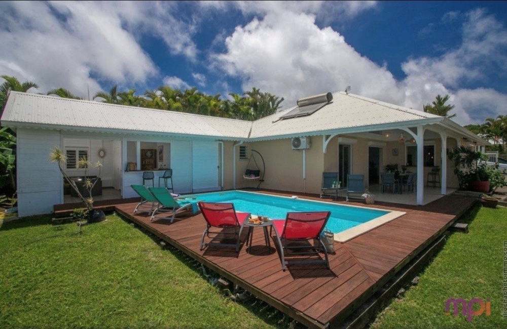 L'extérieur : Un véritable havre de paix comprenant une terrasse en teck avec pergola, une piscine (6x4) et un poolhouse aménagé (salon, salle d'eau et WC).