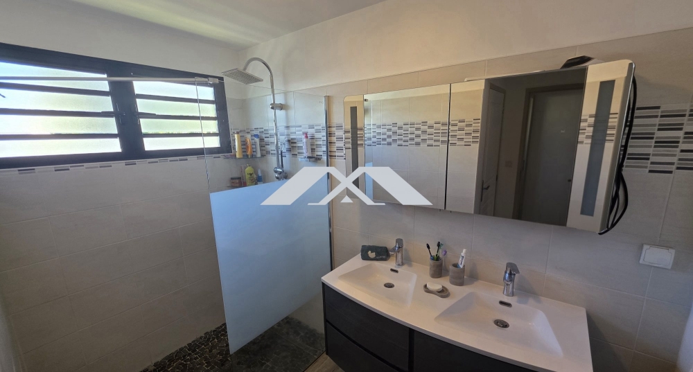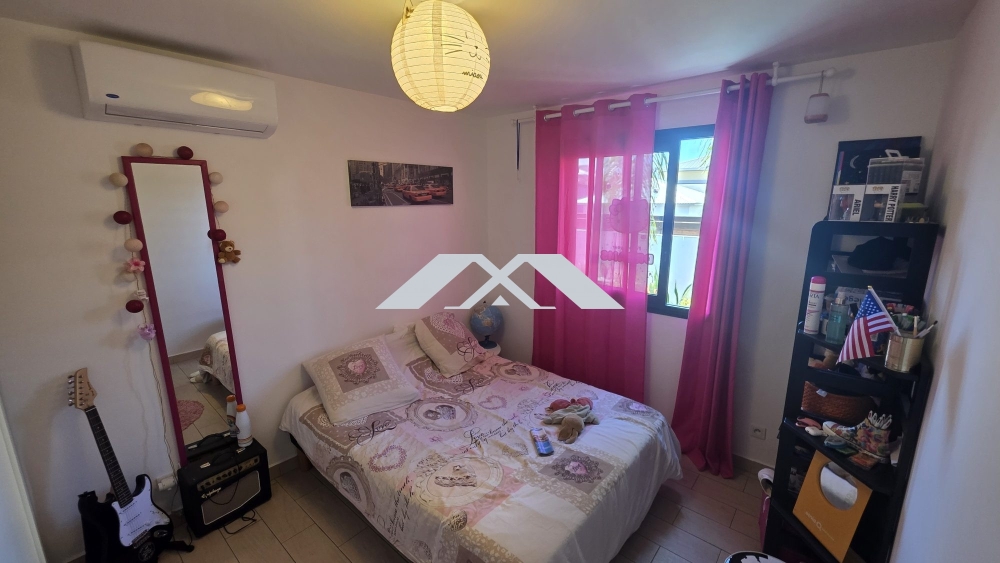 Située dans un quartier calme et pavillonnaire de Bras-Fusil, cette villa de 80 m² construite en 2016 repose sur un terrain de 322 m². L'accès à la propriété est sécurisé par un portail électrique ouvrant sur un garage couvert capable d'accueillir deux véhicules + 2 places aériennes. Les extérieurs se composent d'espaces verts agrémentés de manguiers et de palmiers, entourant une piscine de 3,5m x 5,5m traitée au sel. La fontaine de la piscine, associée à la végétation, diffuse une énergie reposante dans tout le jardin, lequel dispose également d'un abri de jardin pratique. Une varangue et une terrasse en deck complètent ce bien ainsi qu'une terrasse proche de la piscine.