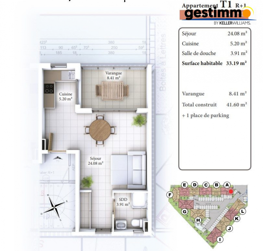 Appartement de type 1 en R+1 dans une résidence de charme au coeur d'un environnement tropical envoûtant.