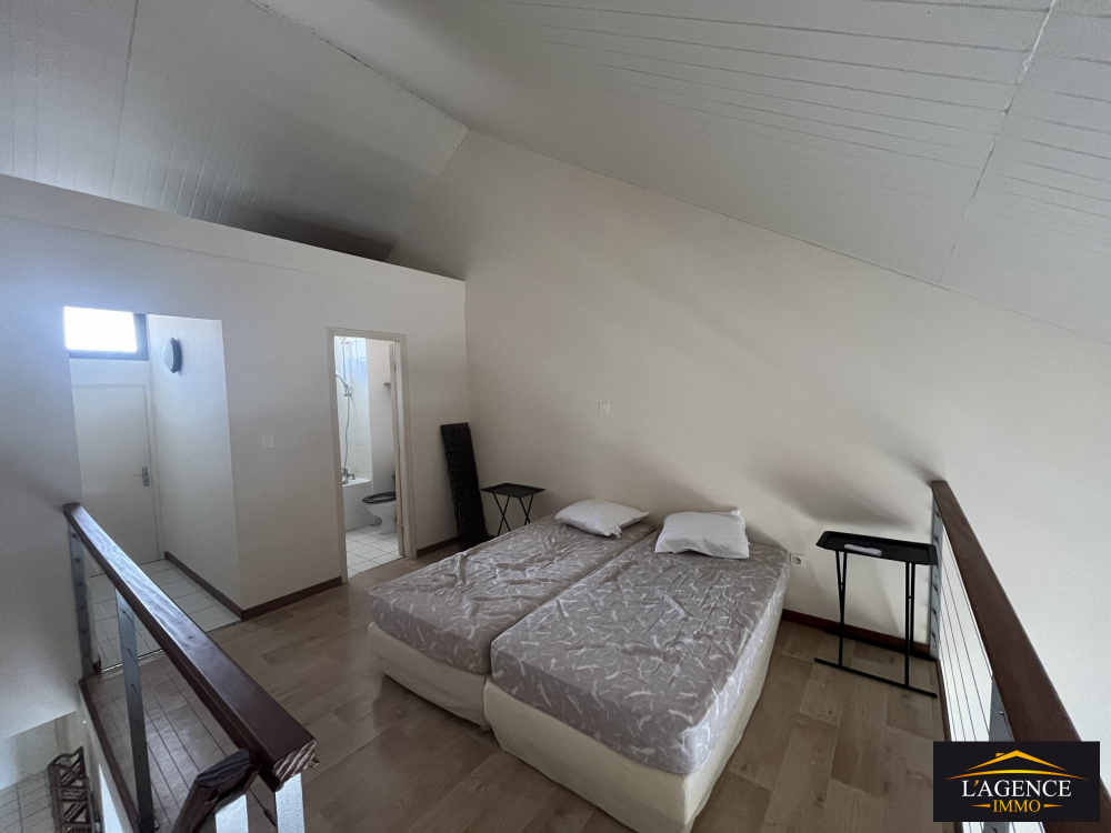 À l'étage, vous trouverez une charmante chambre en mezzanine, dotée d'une salle de bain privée. De plus, un grenier est disponible pour tous vos besoins de rangement supplémentaires.