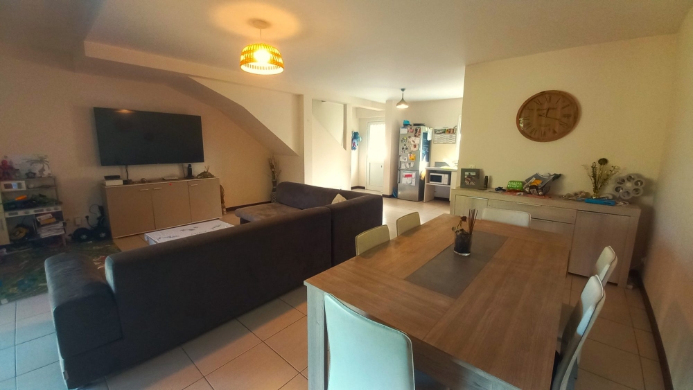 A l'entrée du Domaine de Nouré, dans un environnement très calme, sans vis a vis, villa F3 duplex, mitoyenne d'un côté, comprenant : au rdc, cuisine équipée ouverte sur séjour, buanderie; à l'étage 2 chambres avec placards, salle d'eau, et WC séparé.