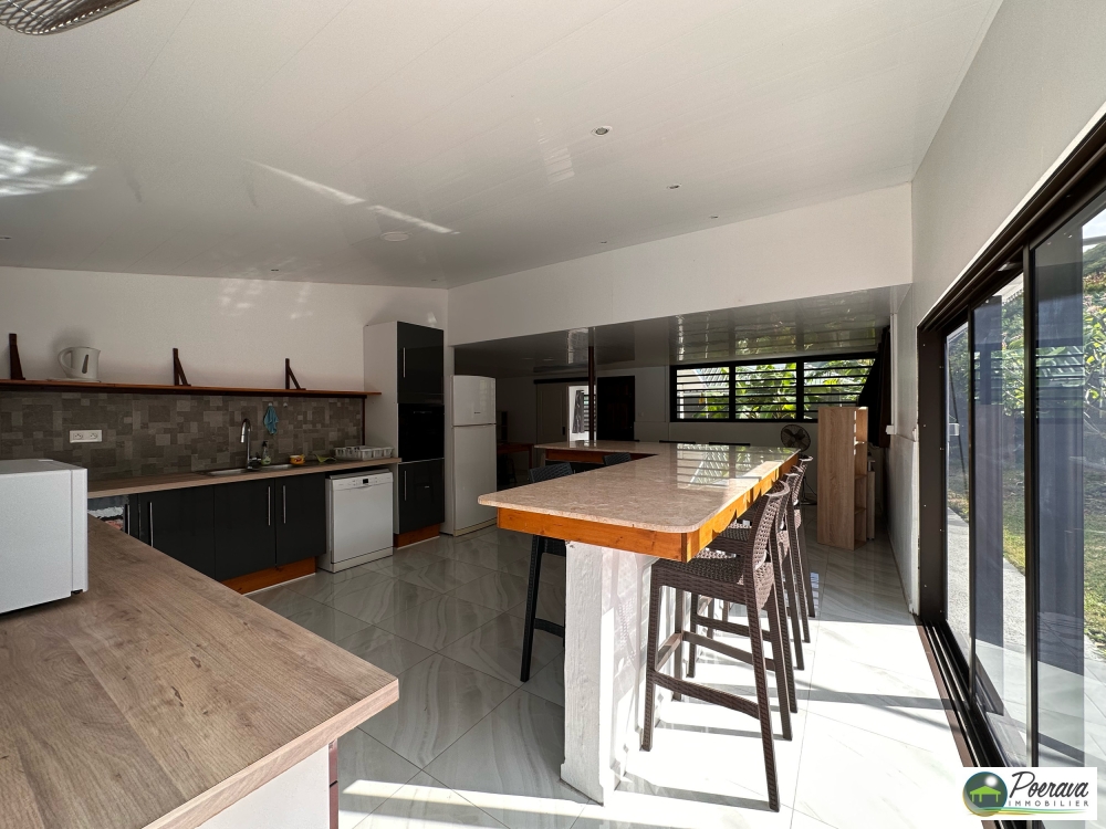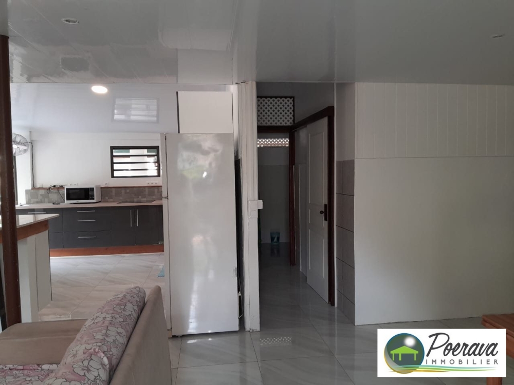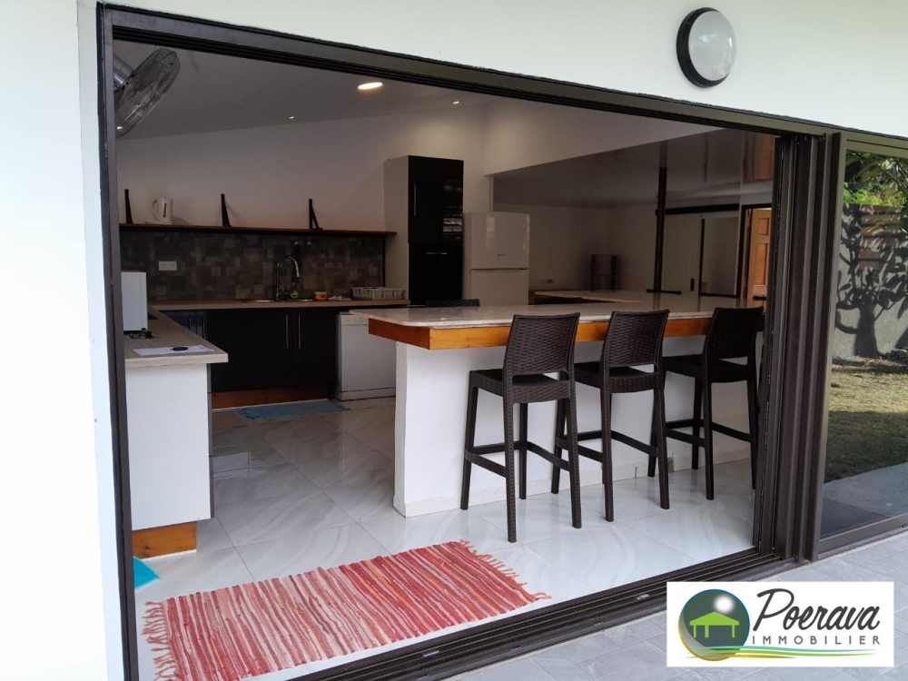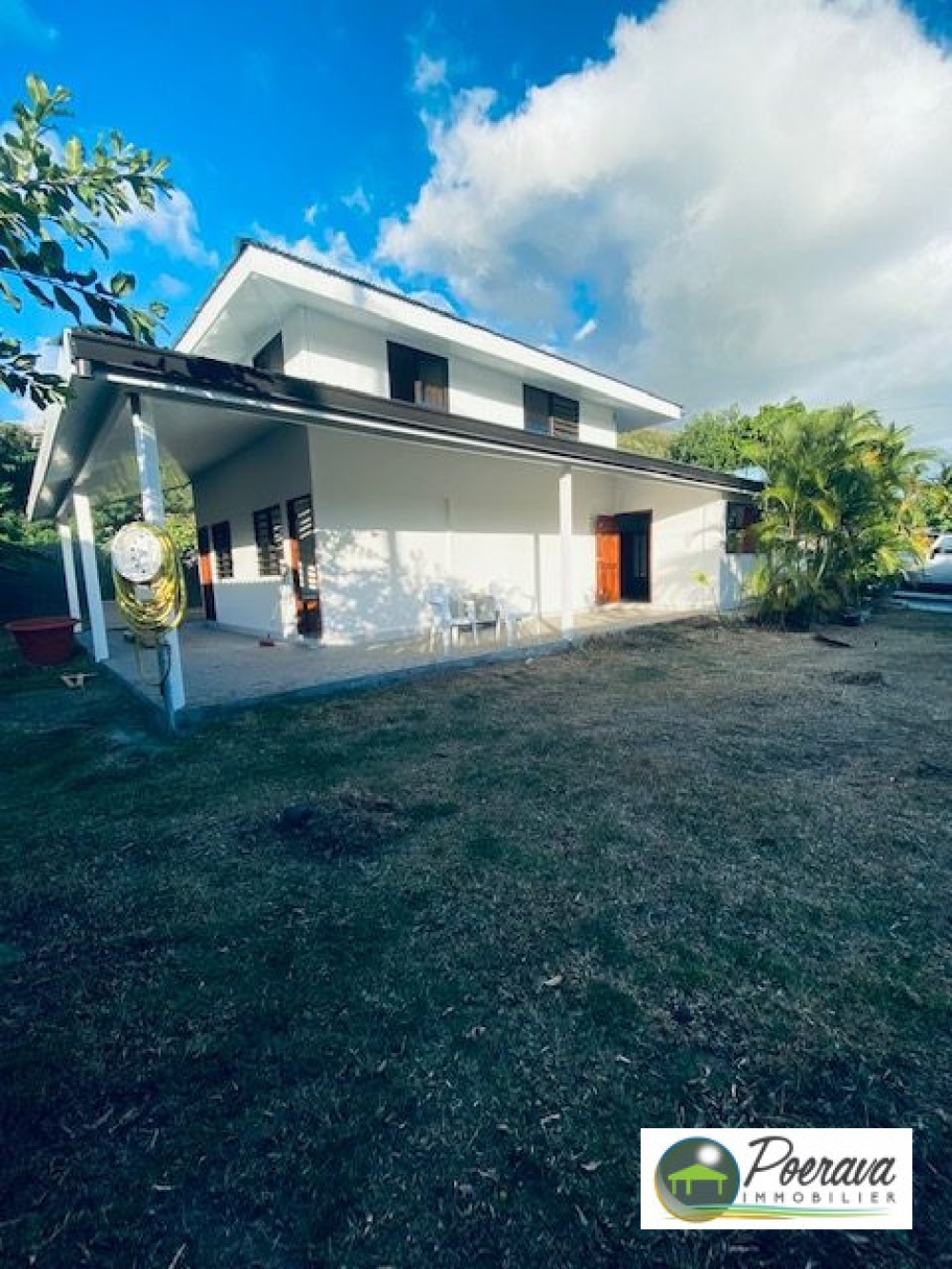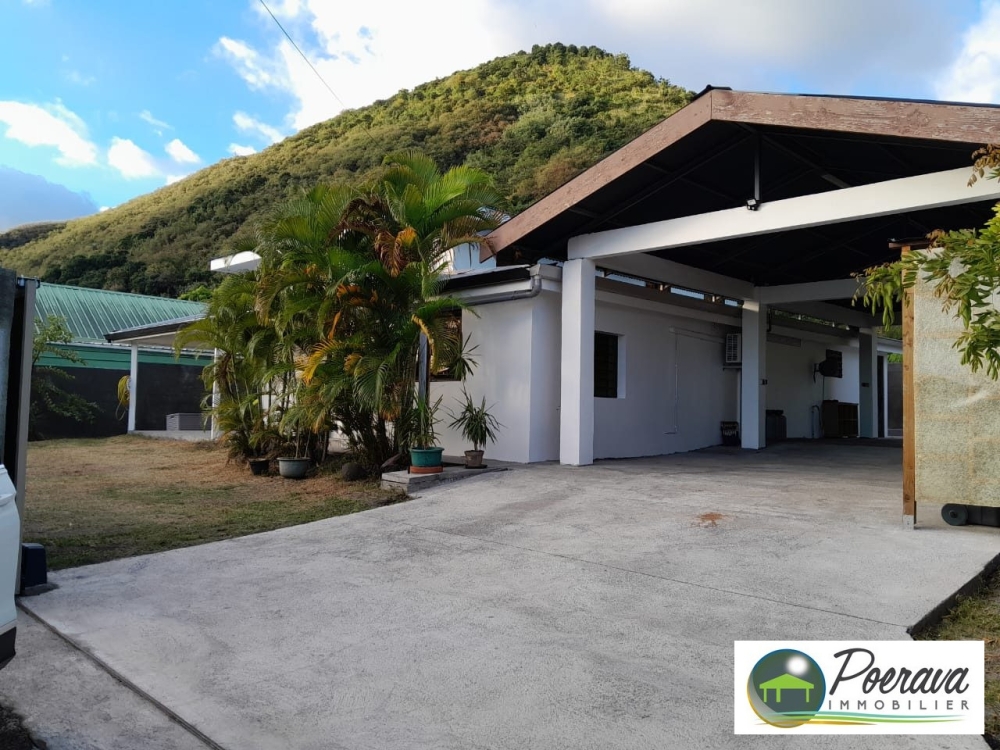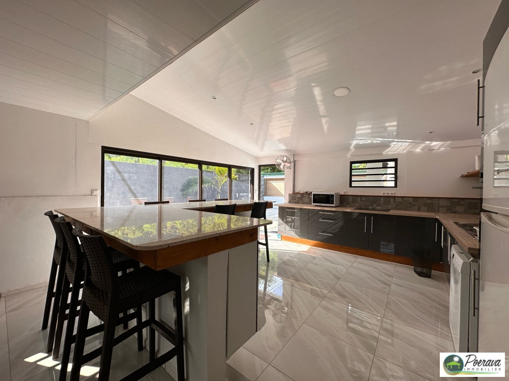 Paea - Loue maison 4 pièces, entièrement rénovée, comprenant trois chambres, deux salles de bains, séjour, cuisine aménagée équipée. Garage, terrain clos d'environ 640 m².