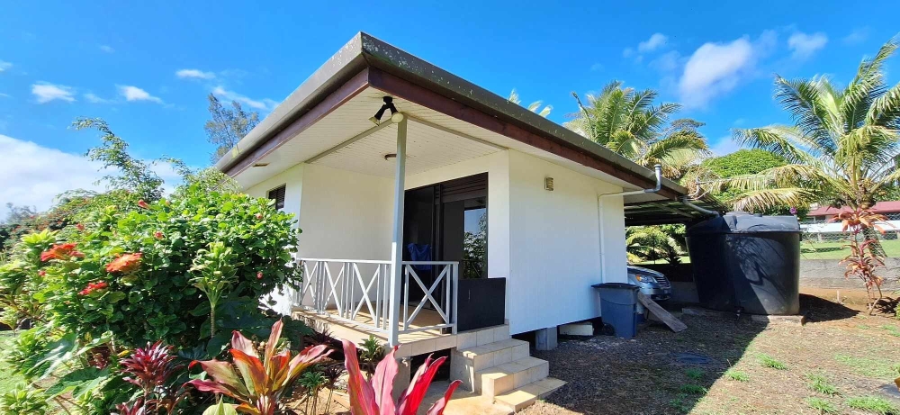 Les Hauts d'Afaahiti à 10.5km du centre de Taravao : Maison F3 récente de 60m², avec un jolie jardin spacieux sur un plateau verdoyant et calme, comprenant :