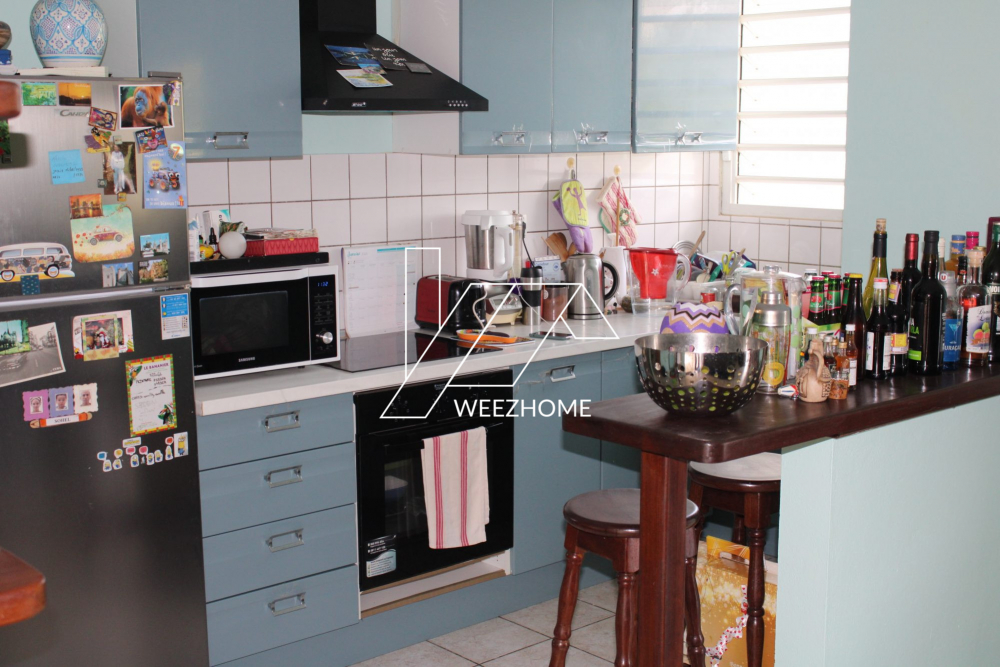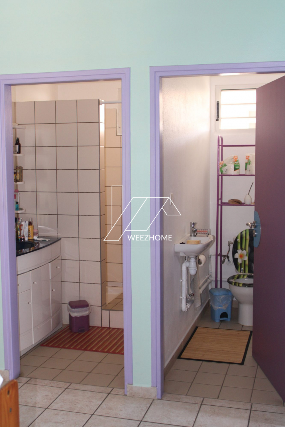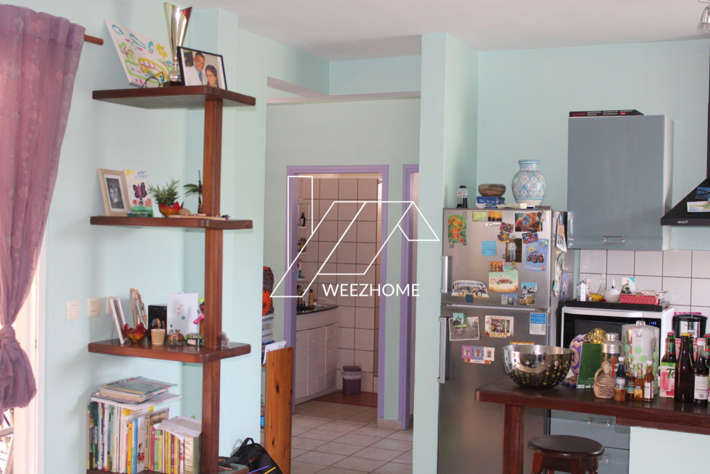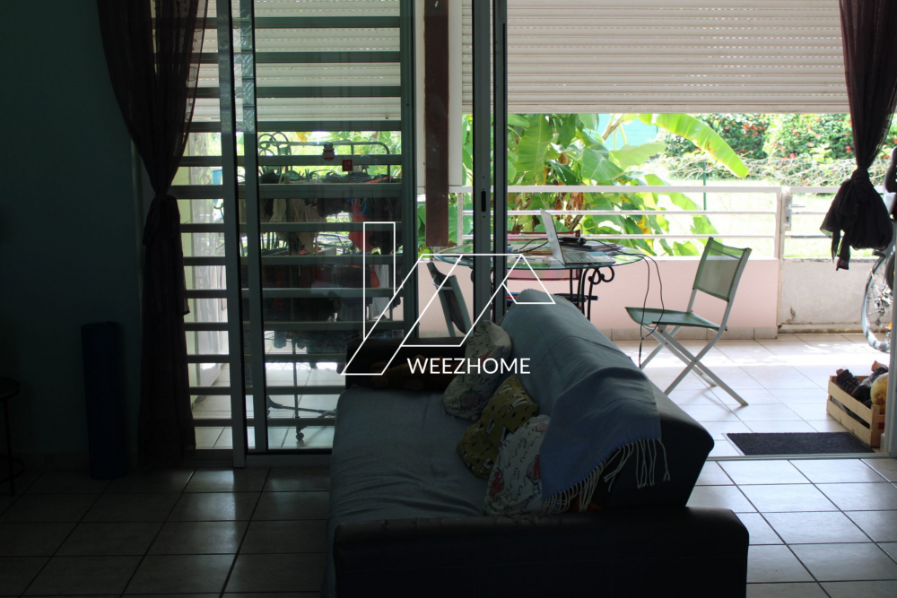 Un beau T3 dans une ensemble immobilier, la Résidence des allées d'Emeraude situé à Cayenne, comprenant un porche, une entrée, un séjour, deux chambres avec placard, dont une climatisée, une cuisine américaine, une salle d'eau avec douche, un wc indépendant, et une terrasse de 13 m2 permettant d' y prendre ses repas.