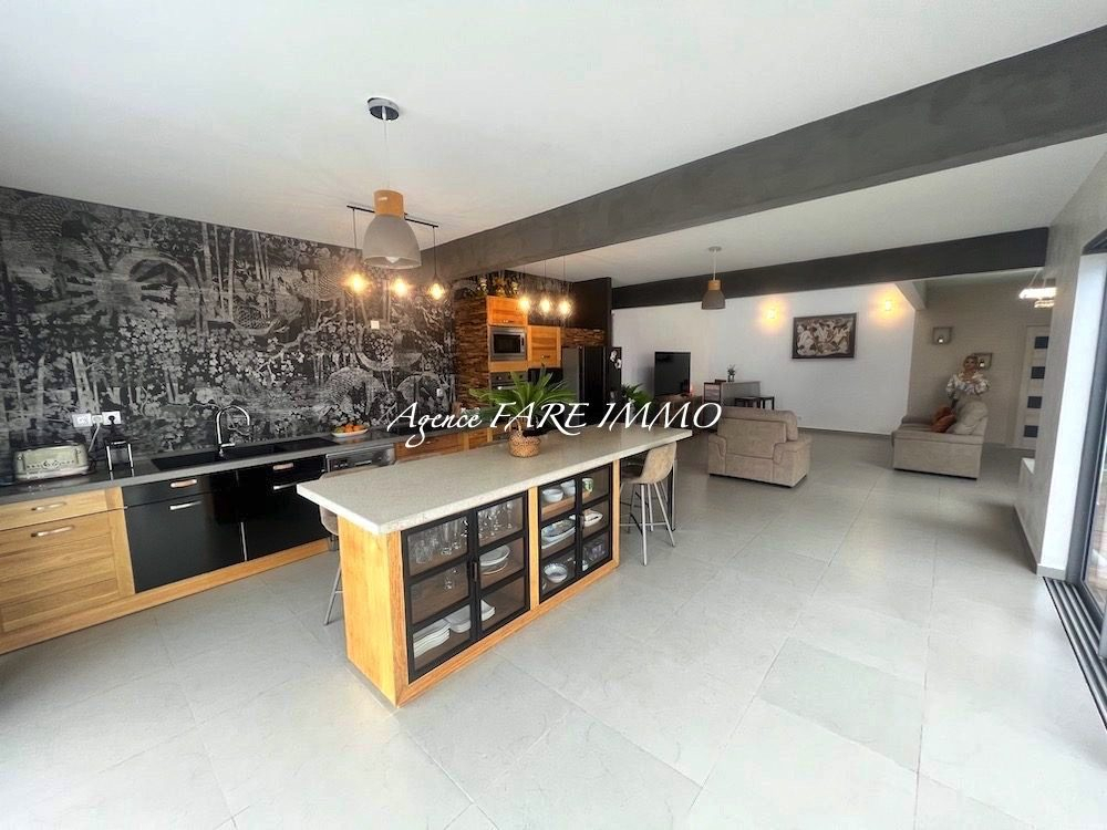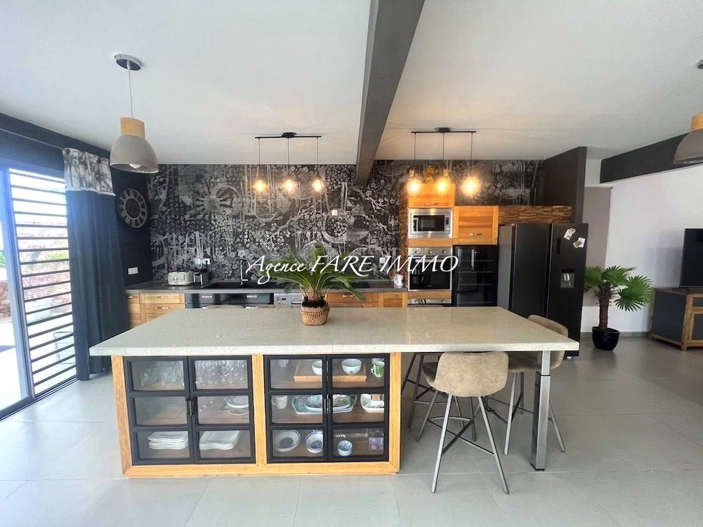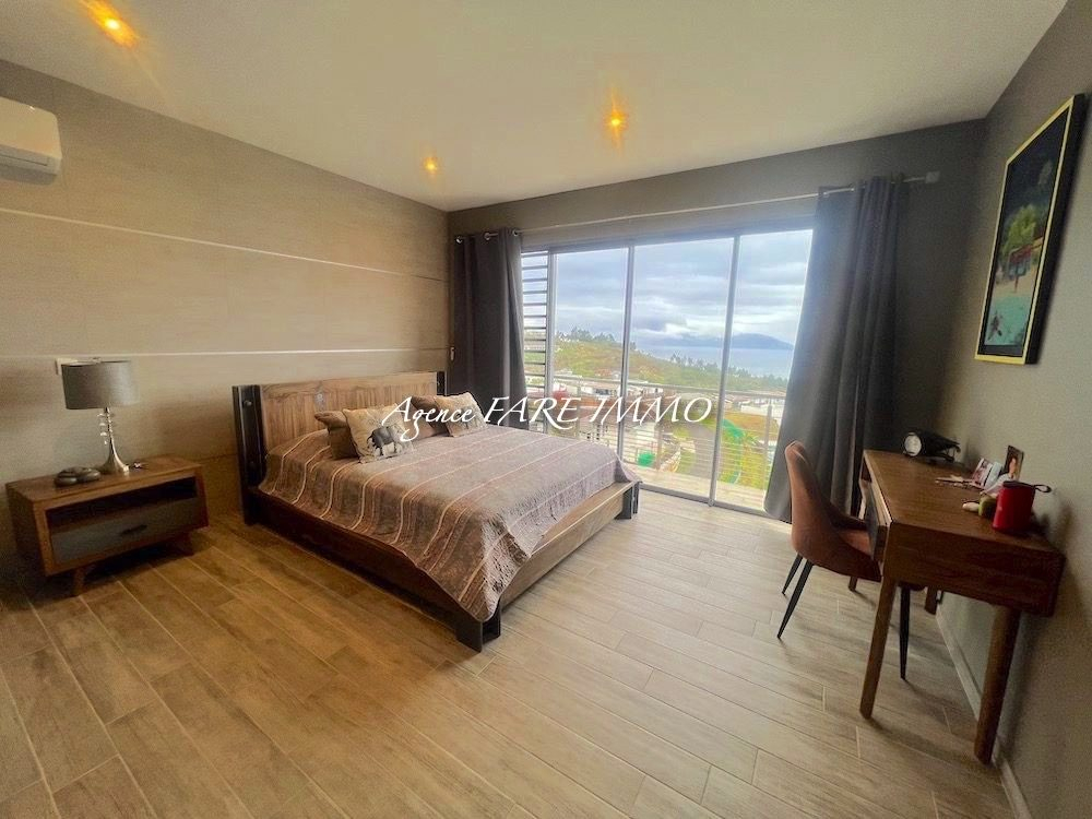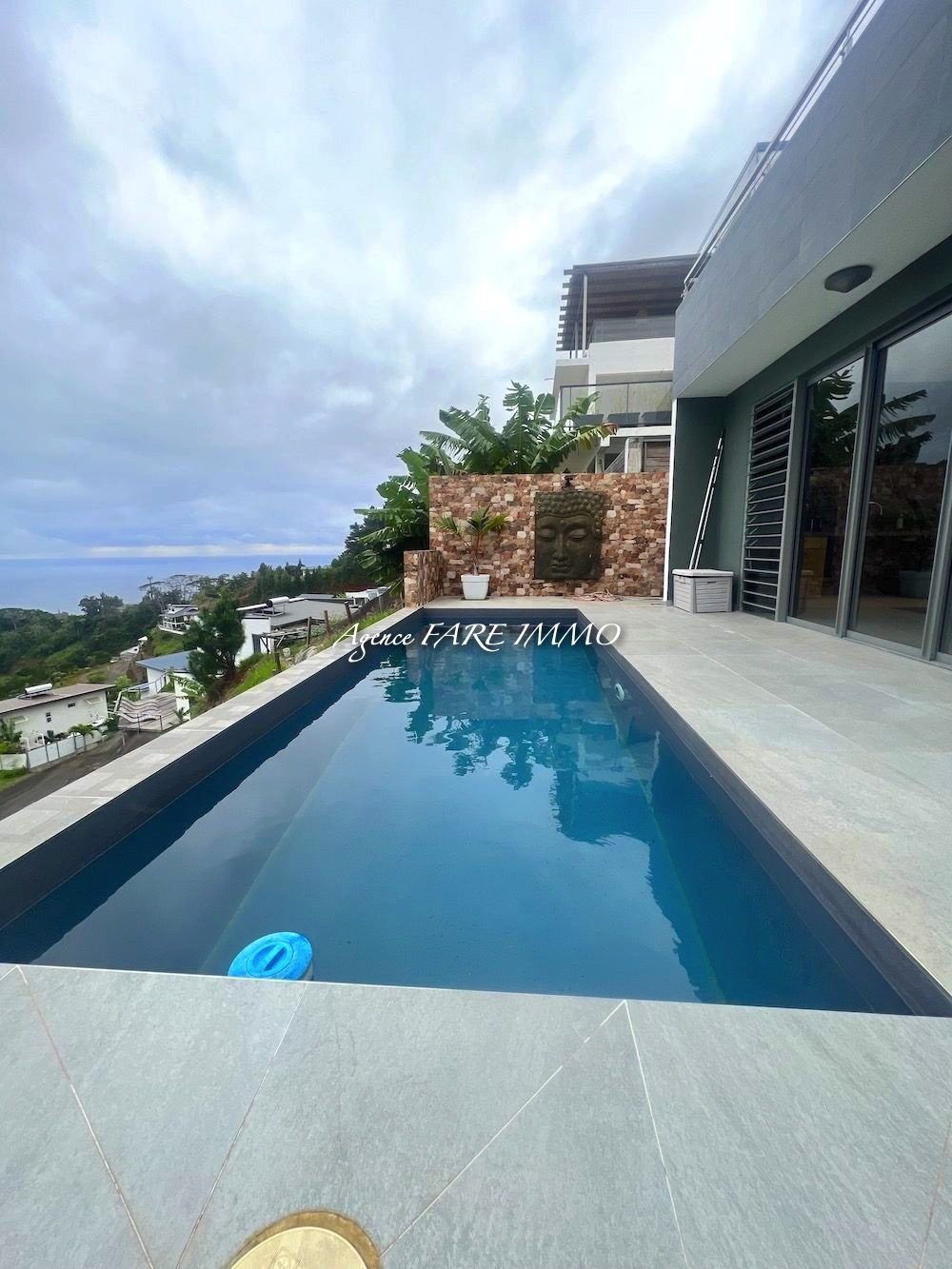 Pamatai Hills, villa contemporaine d'exception avec une superbe vue sur Moorea sur 3 niveaux de 290m² avec ascenseur composé au Rdc un garage clos pour 2 voitures plus rangement, entrée. Au -1 : 2 espaces bureau, 1 salon, 2 chambres, 1 salle d'eau avec w.c. Au -2 : 1 espace de vie avec salon, cuisine ouverte équipée et aménagée de 56m² le tout donnant sur une terrasse de 104m² avec piscine, 1 chambre, 1 salle d'eau avec w.c, 1 suite parentale de 28m² avec dressing, salle d'eau et w.c. 1 buanderie, 1 w.c invité.