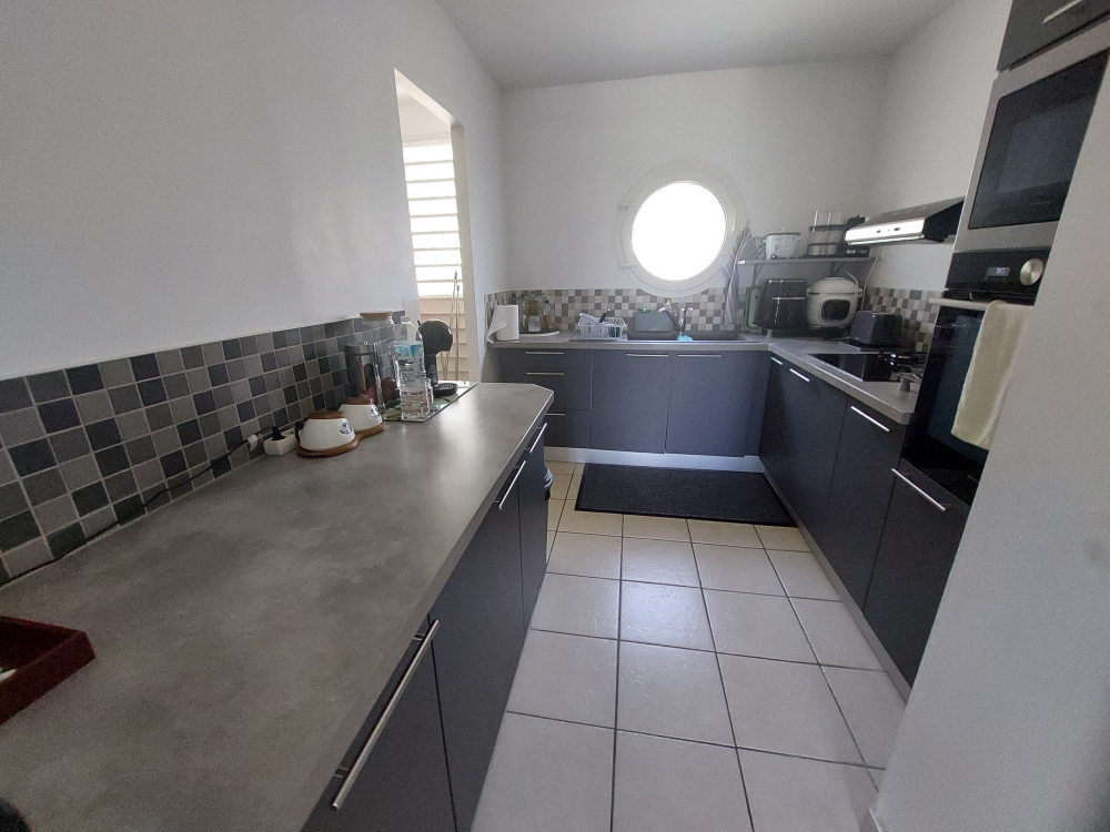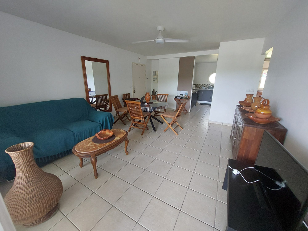 Un vaste séjour de 22.10 m², une cuisine entièrement aménagée, deux chambres avec rangement dont une climatisée, une salle d'eau avec WC, un cellier, un WC indépendant, une terrasse de 31.15 m².