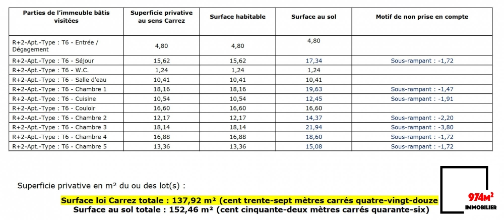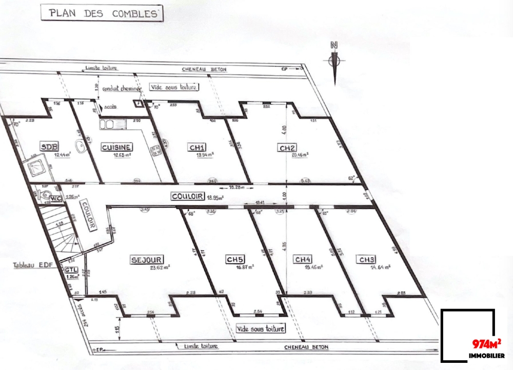 -Comble (137m2): 1 appartement de type T6: séjour, cuisine , cinq chambres, salle d'eau et wc
