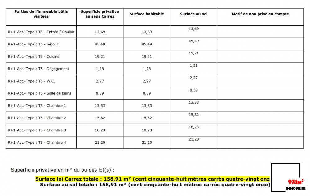 -R+1 (158m2): 1 appartement de type T5: séjour, cuisine , quatre chambres, salle de bains et wc
