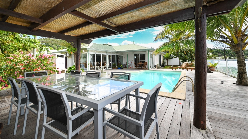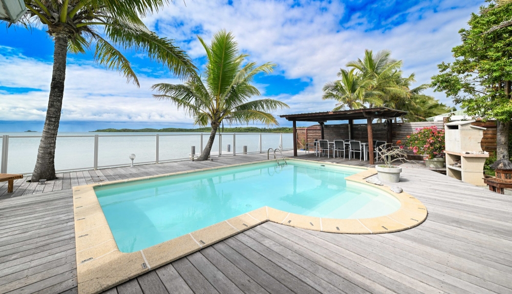 Les pieds dans l'eau, ce bien entièrement meublé est composé d'un vaste séjour avec sa cuisine ouverte, une véranda donnant accès à une belle terrasse avec piscine, faré et coin grillades, une chambre parentale avec dressing et salle d'eau / wc, une seconde chambre avec vue sur la piscine, un grand bureau, une salle de bains et un wc indépendant.