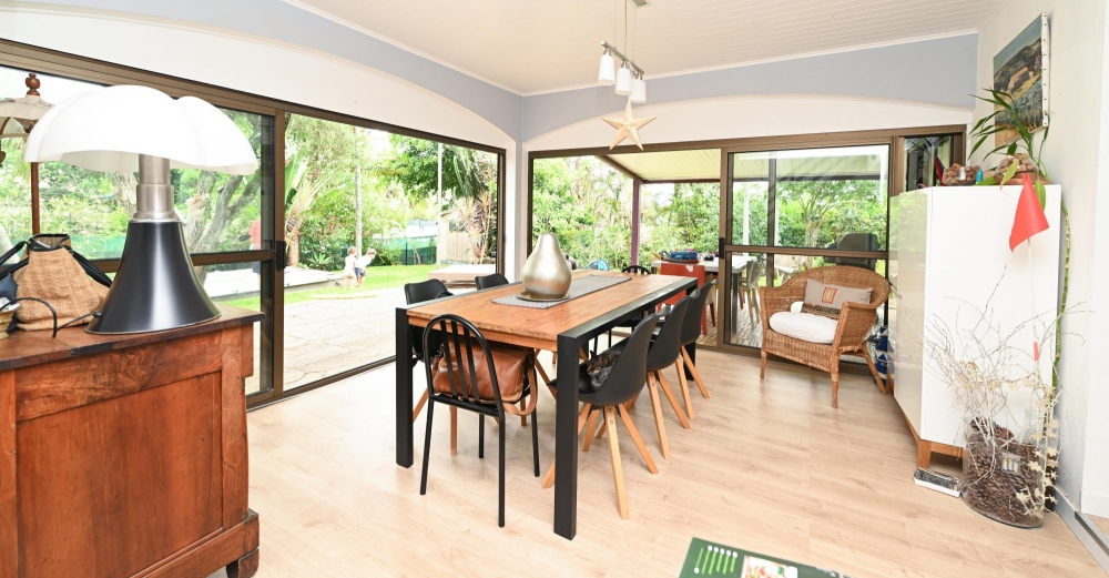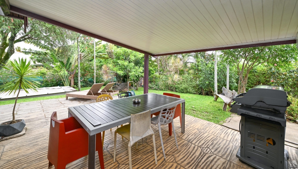 Elle vous offrira une belle et grande terrasse couverte pour recevoir vos convives, un double séjour avec cuisine ouverte et aménagée, une suite parentale climatisée avec salle d'eau, un wc indépendant.