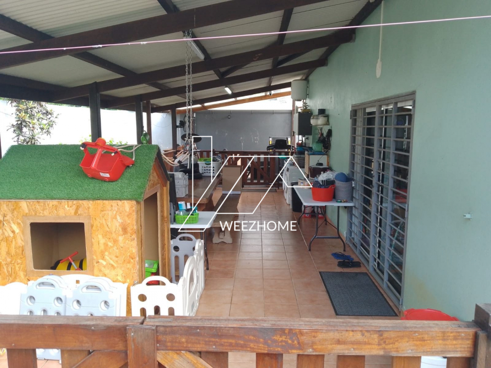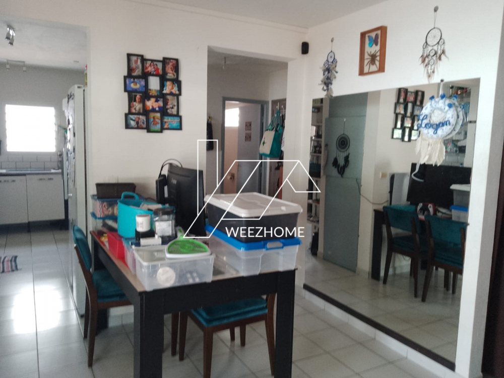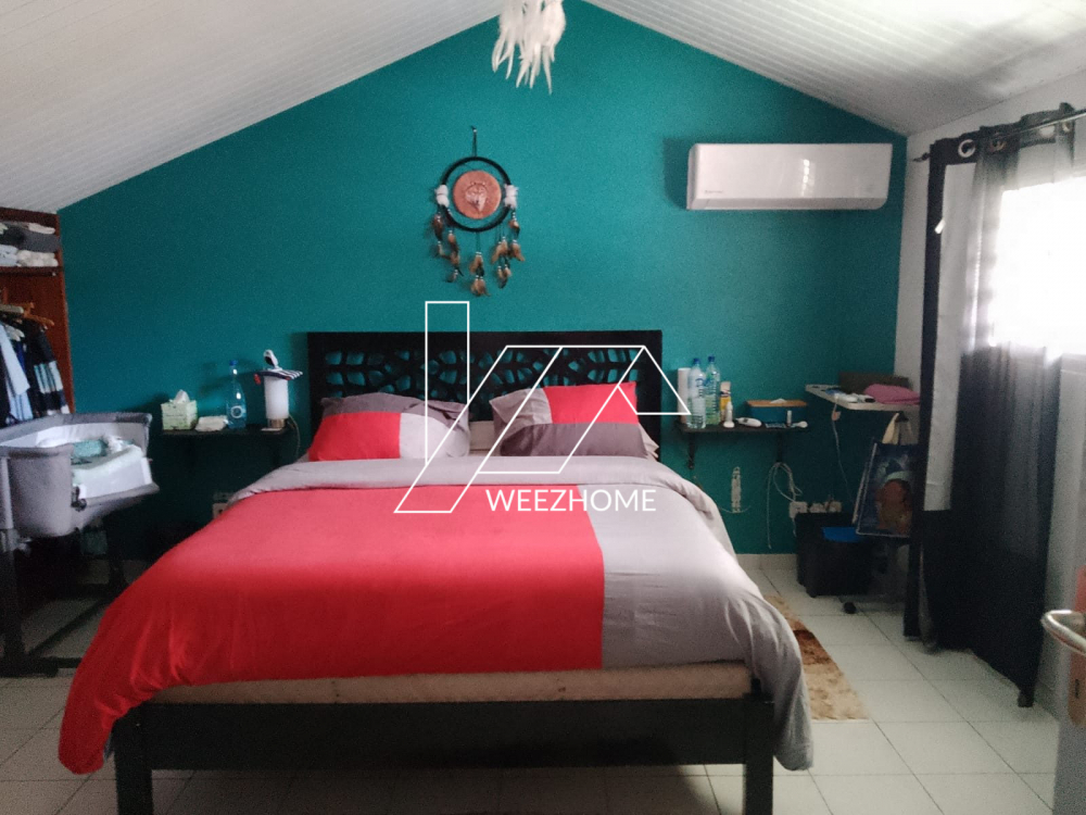 À Matoury, dans un lotissement composé principalement de maisons individduelles datant de 2010, une maison individuelle récente, sur un terrain clos de 518m2, constituée, sur 2 niveaux, au rez-de-chaussée, d'une entrée, un séjour, une cuisine et son cellier, un wc ; à l'étage, 2 chambres avec climatisation, une salle de bains, un wc.