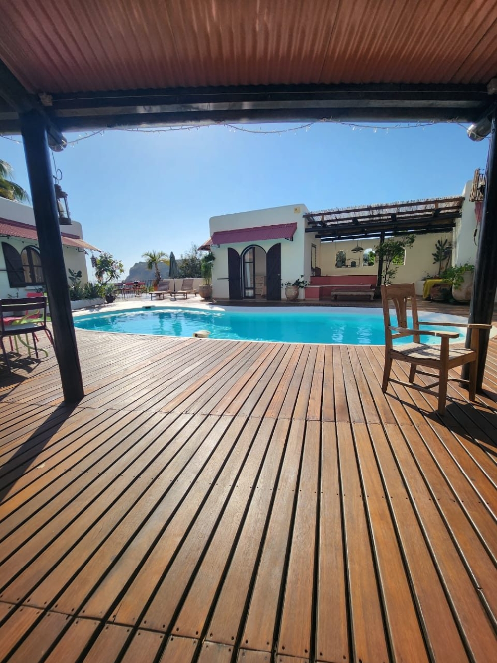 La propriété bénéficie de beaux volumes intérieurs et de grands espaces extérieurs permettant de profiter de la piscine et de la vue sur l'Océan. ?