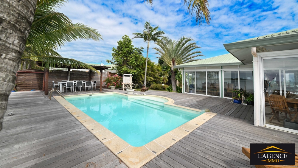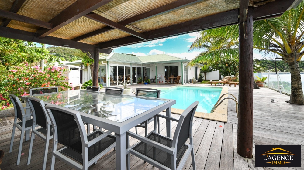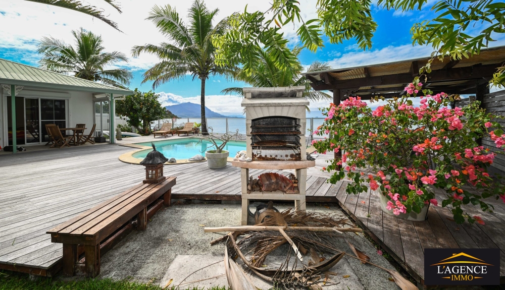 Située en bord de mer, cette villa entièrement meublée offre un cadre de vie unique Le vaste séjour, baigné de lumière, est prolongé par une cuisine ouverte , une véranda s'ouvre sur une superbe terrasse équipée d'une piscine, d'un faré et d'un coin grillades parfaits pour vos moments de détente en plein air