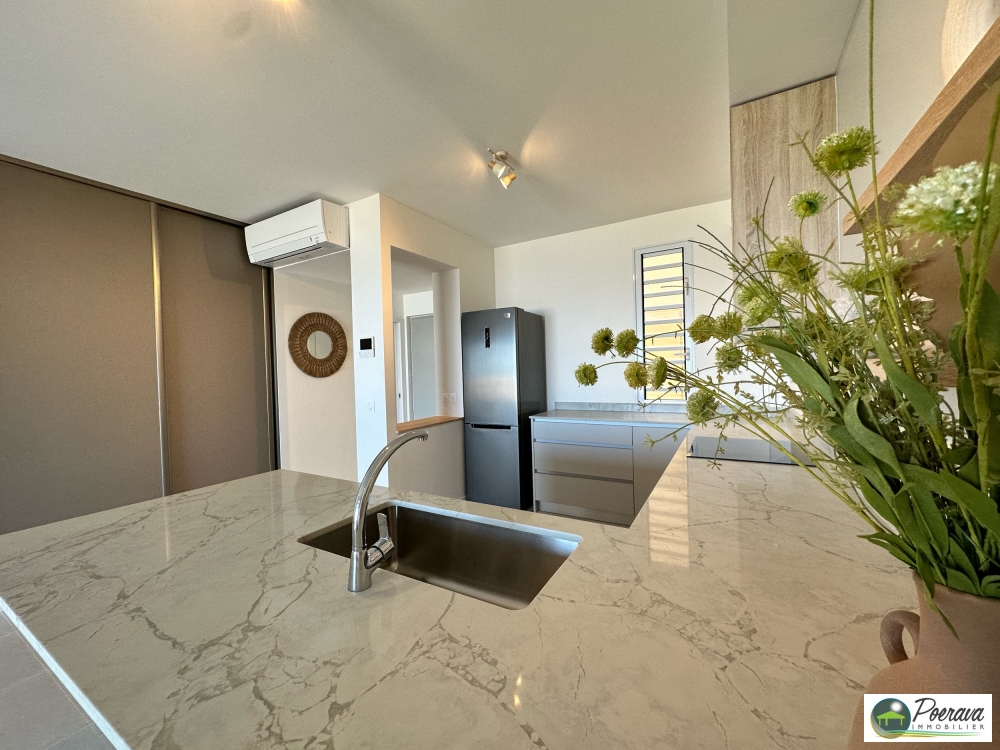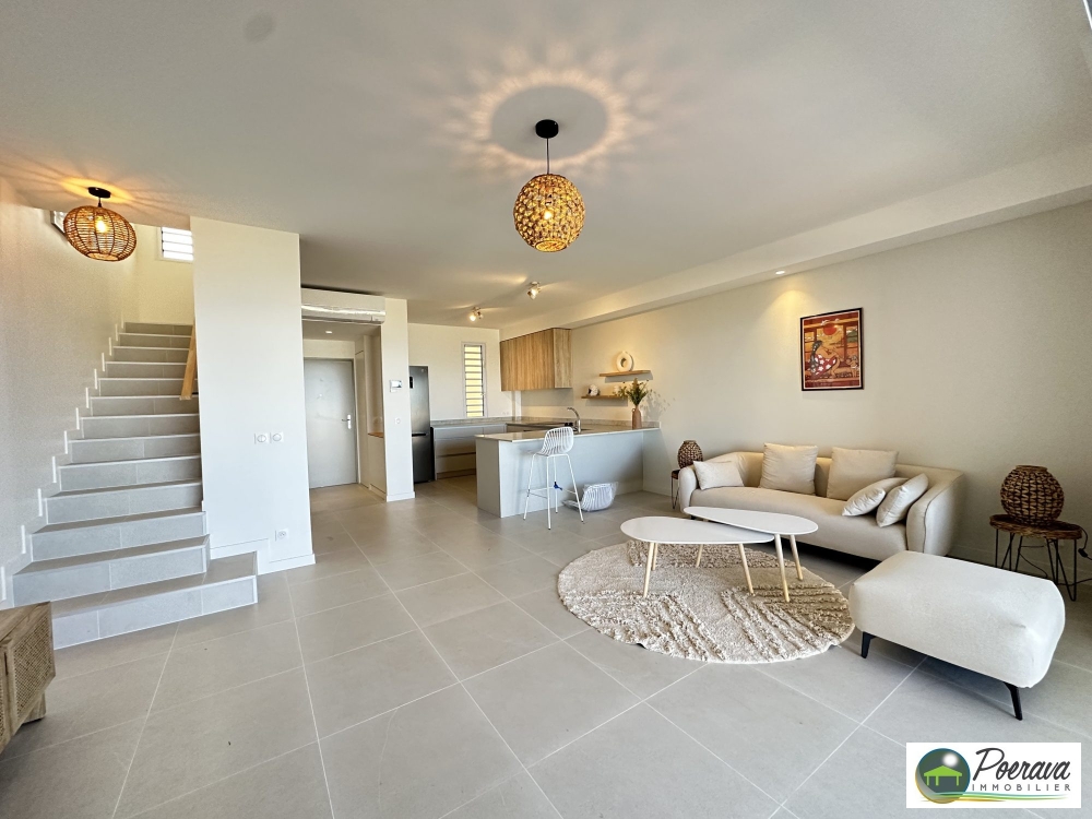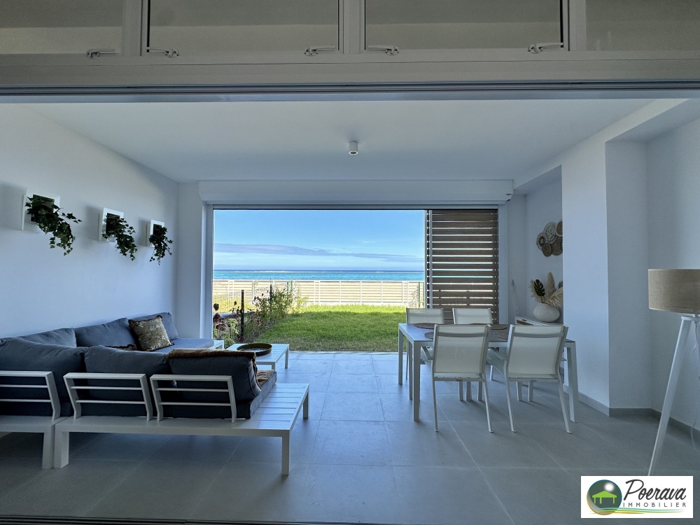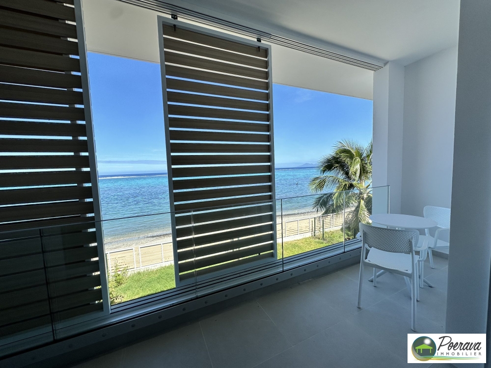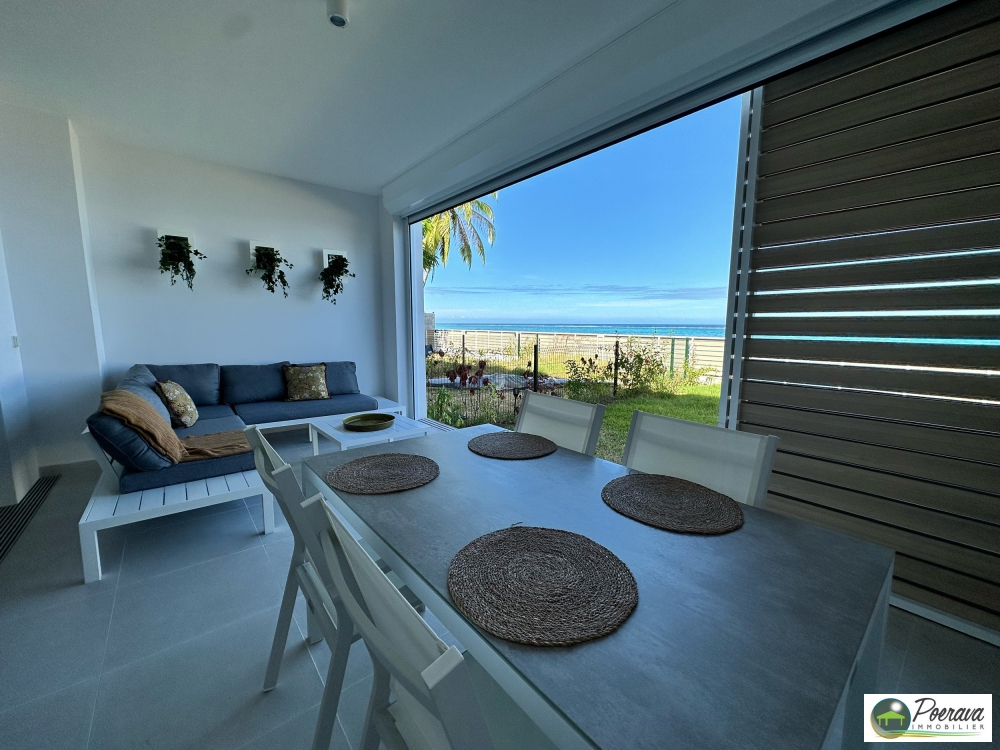 PAEA - EXCLUSIVITE AGENCE - Vous serez séduits par ce bien d'exception situé en bord de mer, sur la plage légendaire de Vaiava. Magnifique appartement en rez de jardin meublé et aménagé avec goût et de bonne facture, comprenant cuisine aménagée équipée, salon-séjour ouvert sur une spacieuse terrasse, vue sur le lagon, deux chambres avec salle d'eau privative ouvertes sur une terrasse, dressing, loggia, cellier- buanderie, 2 parkings. Résidence neuve avec piscine à débordement sur le lagon.