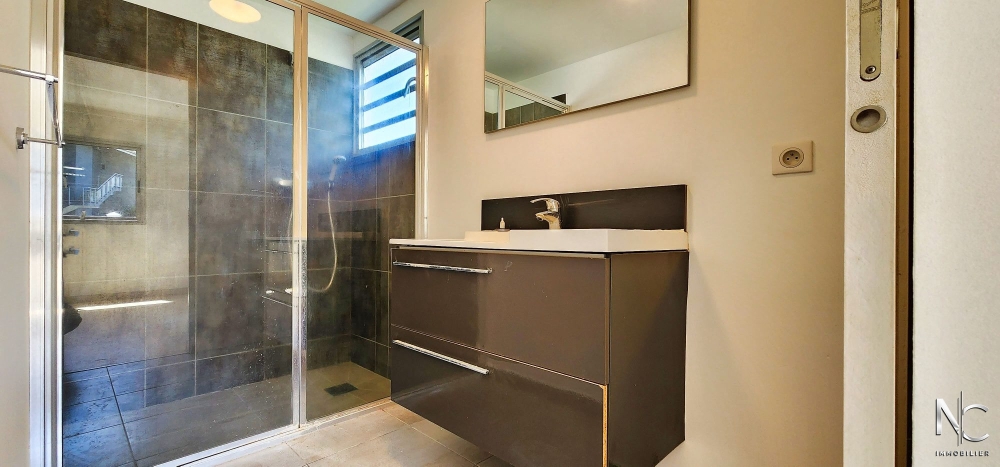 La terrasse sans aucun vis à vis offre un bel espace extérieur et est complétée d'une buanderie fermée.