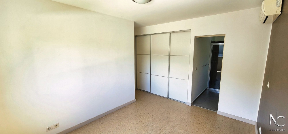 Il dispose d'une entrée ouvrant sur l'espace de vie composé du séjour et de la cuisine Us équipée, d'une chambre climatisée avec grands placards et salle d'eau, et de WC séparés.