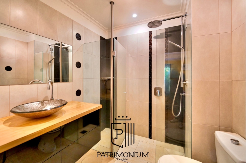 L'appartement se compose de la manière suivante : un spacieux séjour, aménagé pour accueillir une table à manger, un coin TV et un bureau, créant ainsi un espace polyvalent pour répondre à tous vos besoins. La cuisine est aménagée et équipée, vous permettant de préparer de délicieux repas en toute simplicité. Une grande buanderie facilite l'organisation de votre espace de vie. La suite parentale dispose d'une salle d'eau privative, de la climatisation et de placards intégrés pour un confort optimal. La seconde chambre offre également la climatisation et des placards pour un rangement pratique. De plus, vous trouverez un WC indépendant ainsi qu'une seconde salle d'eau pour votre confort.