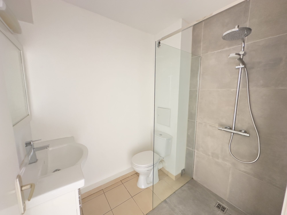 Salle d'eau moderne : Salle d'eau avec douche à l'italienne et WC.