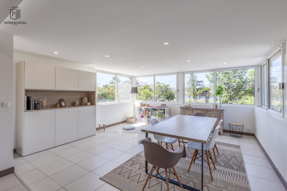 Une spacieuse terrasse fermée avec vue mer vient compléter cet espace, idéal pour les moments de convivialité en famille ou entre amis.